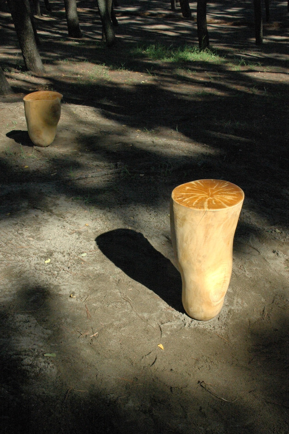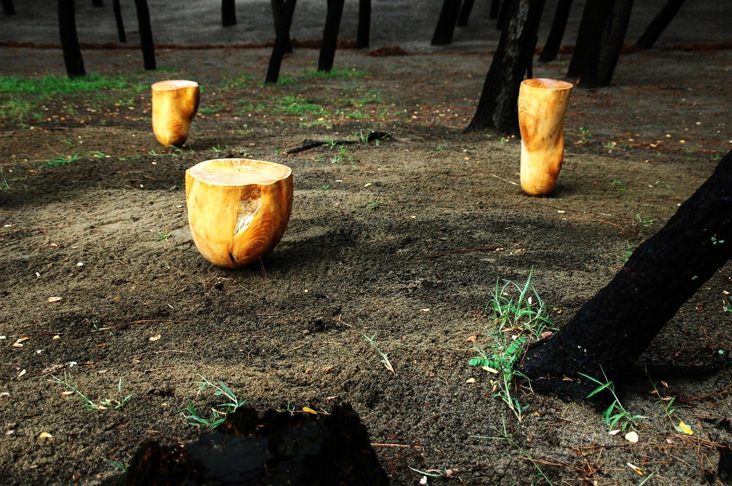 その6点目、大きさと高さの違う3つのイチョウの腰かけ―、