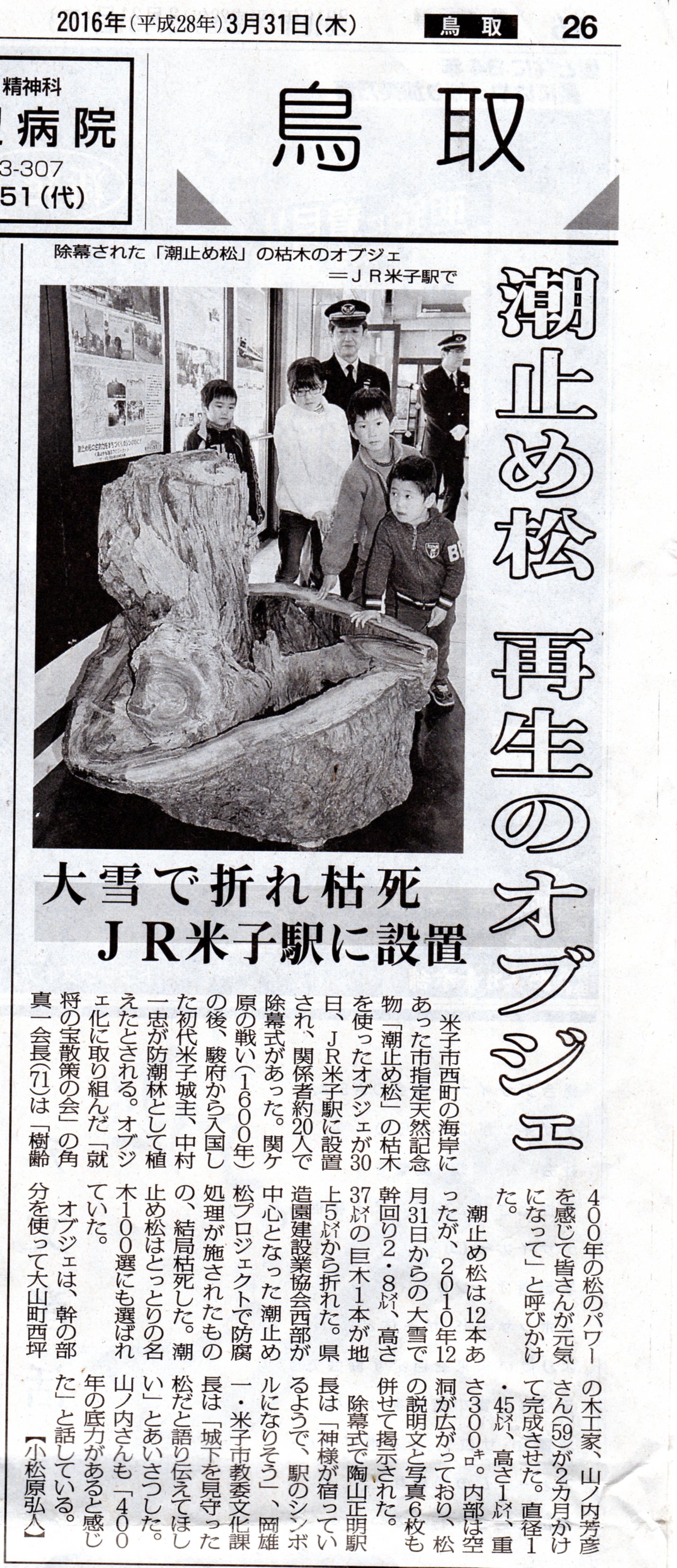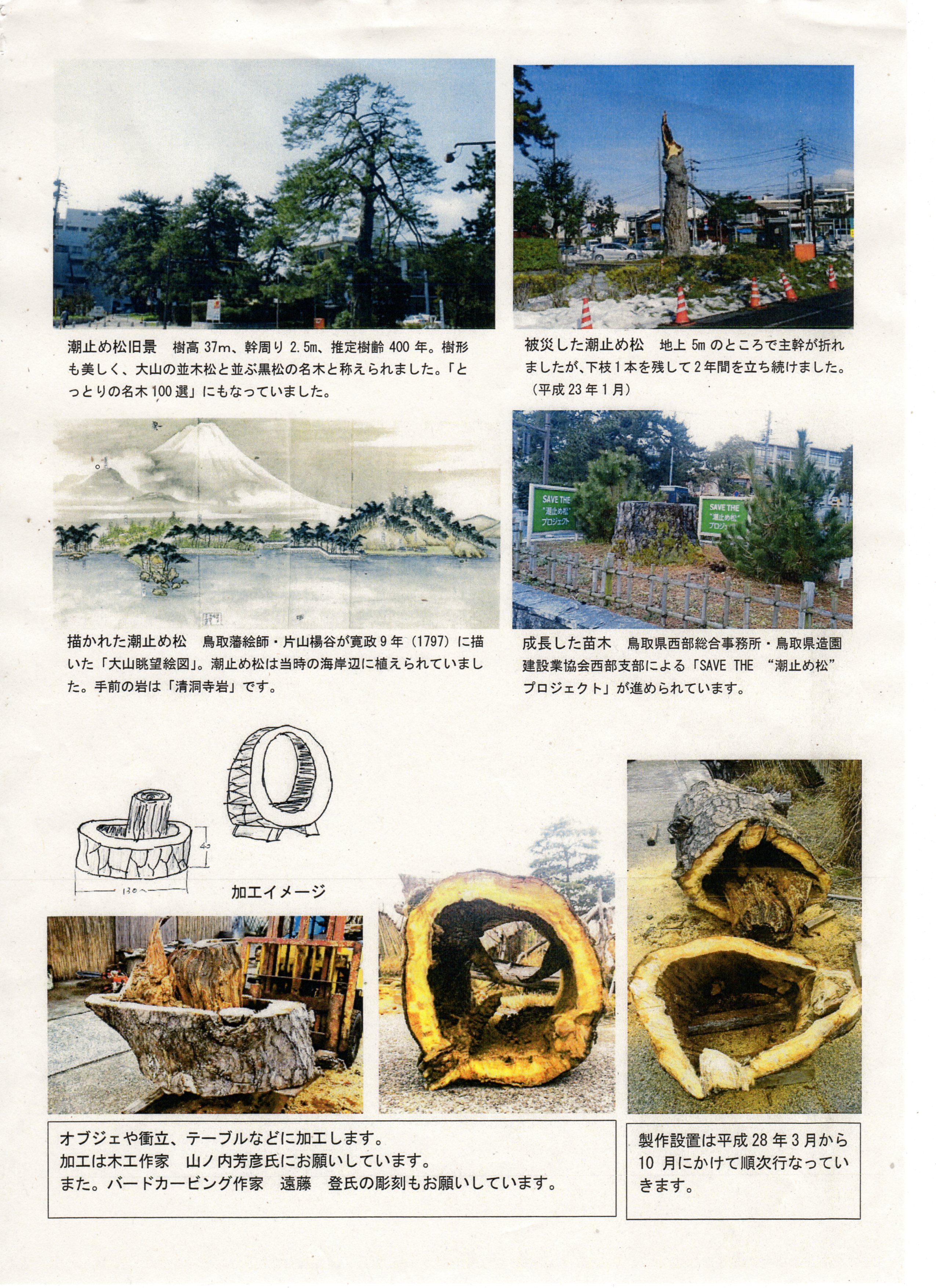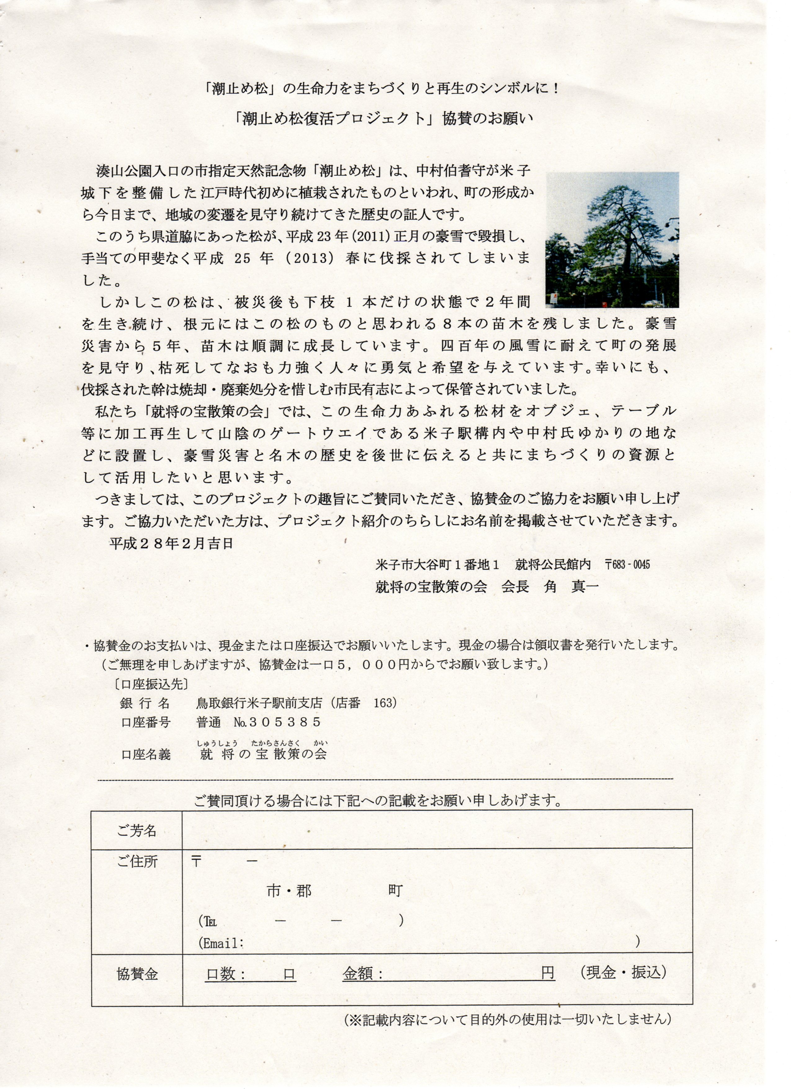 この場を借りて、「潮止め松」復活プロジェクトの賛同カンパを募る。