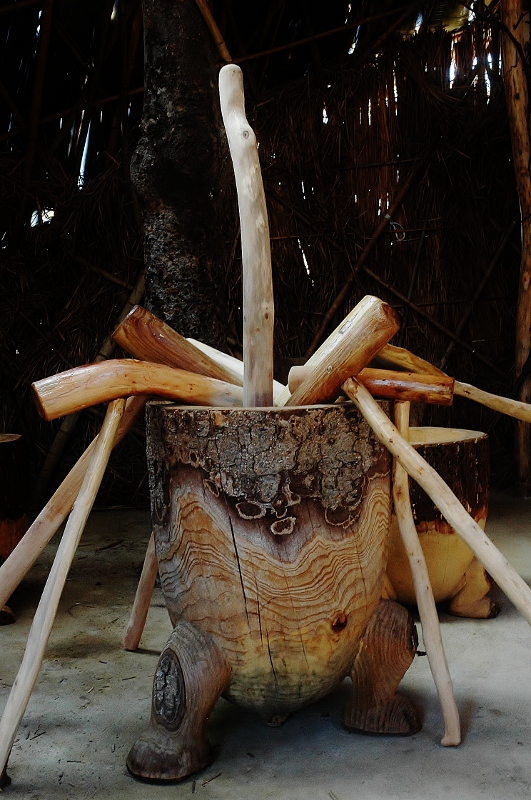 … when the ancient people came to the hill covered with trees for the first time, they dug holes on the south side of large trees, gathered and built with trees cut down using stone tools, and made thatched roofs with bark and grasses. They collected acorns, chestnuts and chinquapins and soaked them to remove the harsh taste. Then they built a fire of branches and dead trees and boiled the nuts to eat. (Chestnut Trees were highly valued for lumber because the wood was waterproof and did not decay easily.)