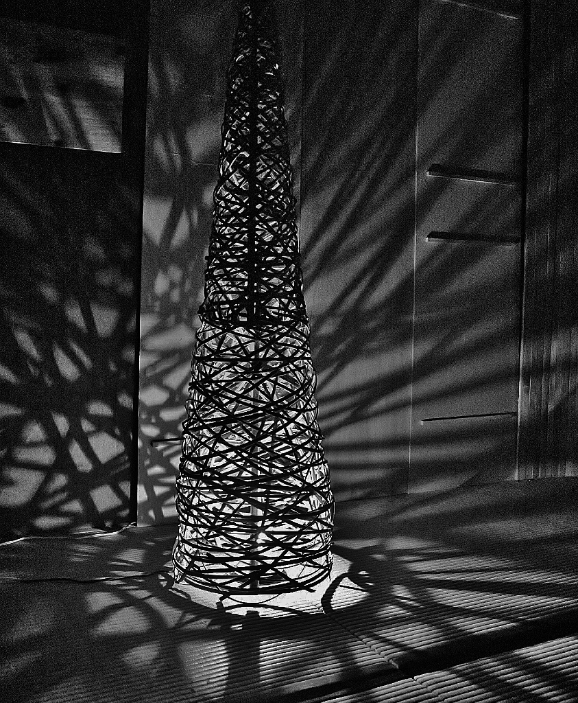 *預かった円錐形の行灯を高く編み足す、もまだ編み足りずー