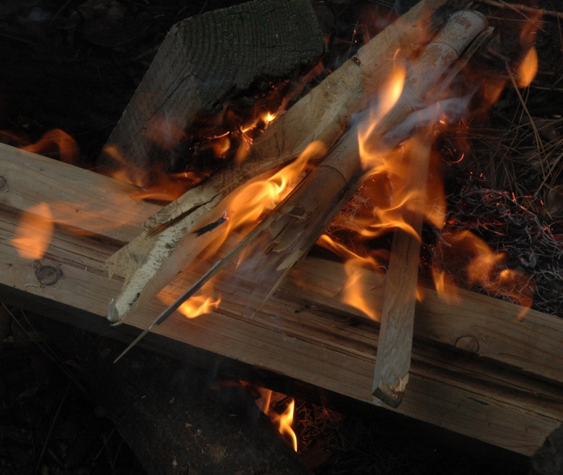 The Man built a shed on the hill. He made the frame using branches that had been thinned from the forests nearby ,and the walls were made of scrap wood that he found abandoned at warehouses. He thatched the roof with thin bamboo, Japanese pampas grass and cogons that he cut near the hill. He collected branches and dead trees to use for fuel.