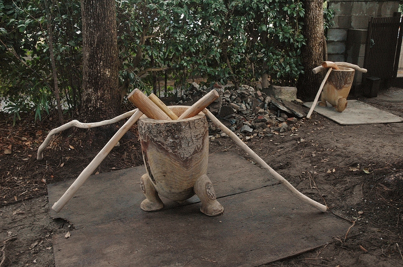 Since then the Man began to find trees in which His friends stayed, took the trees home, and carved His friends out of the trees.