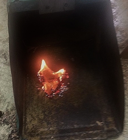 肝心なのは煙が出てから出始める焦げた火粉を、Ⅴ字に切り欠いた溝に集めて火種を作り易くすること。