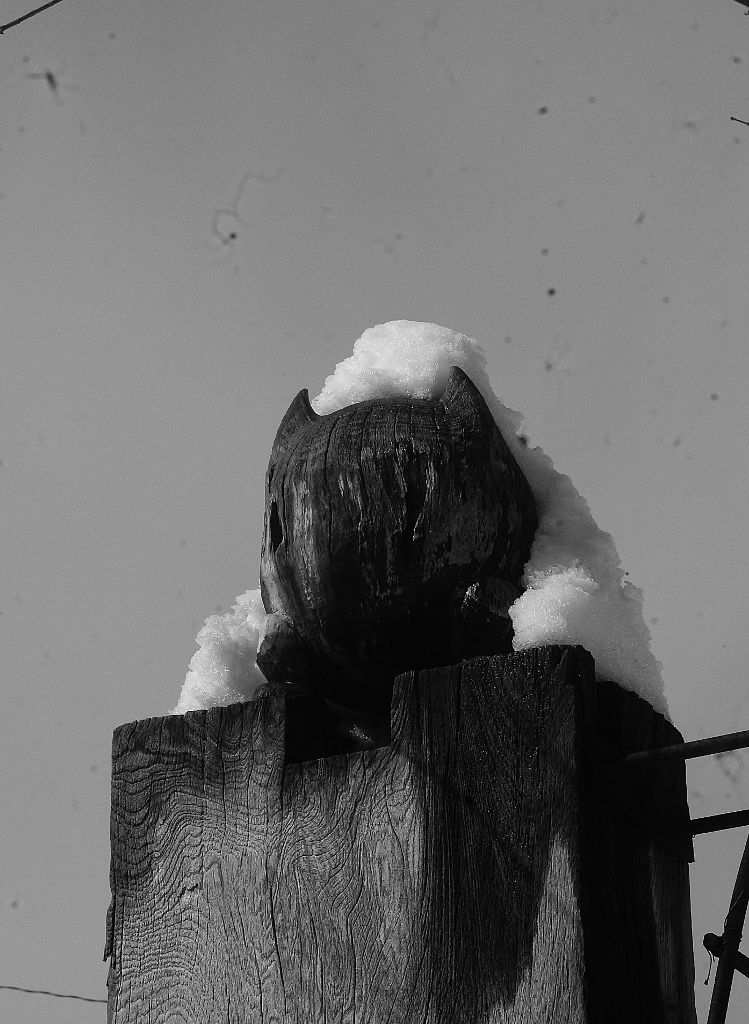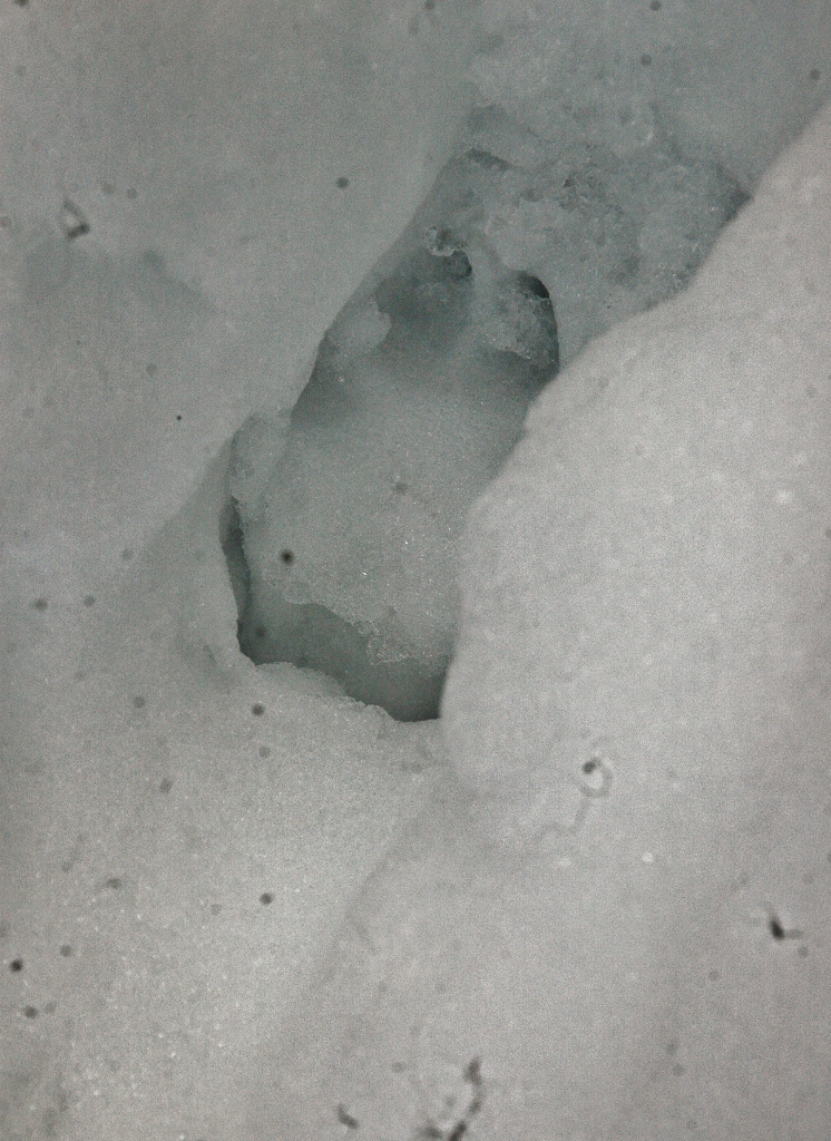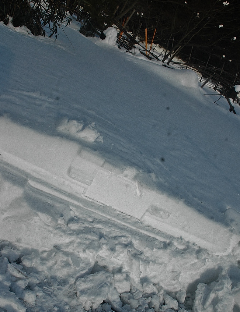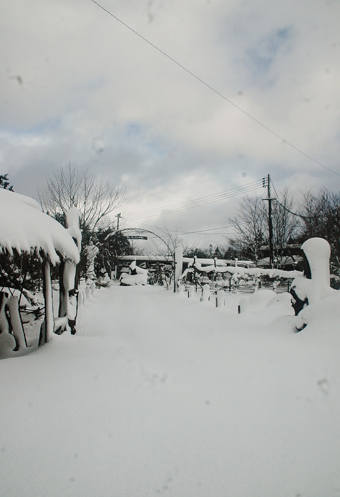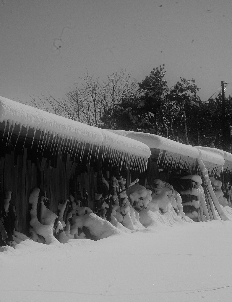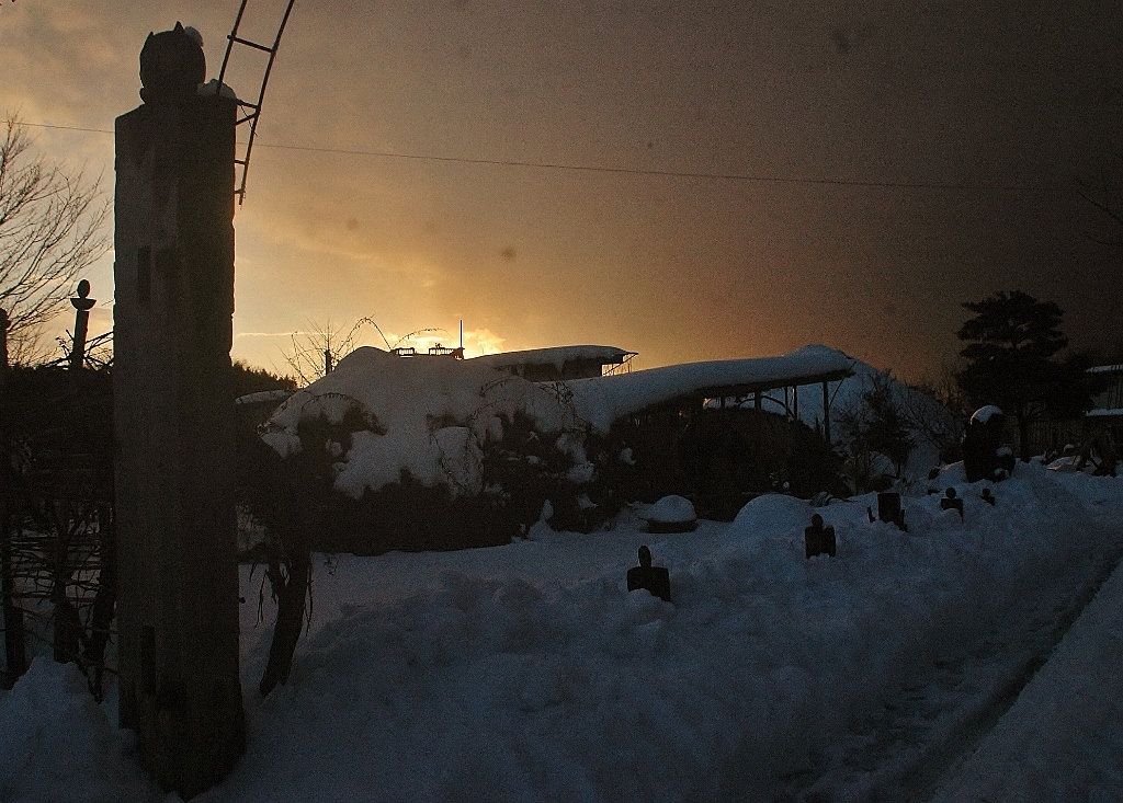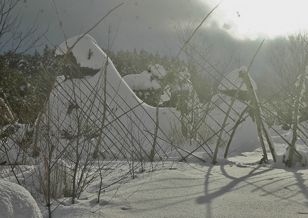 *雪解けが進んだ工房内に動物たちがやって来てそこかしこに足跡を残している.(その中に見かけぬ三本脚の足跡が・・・?!)