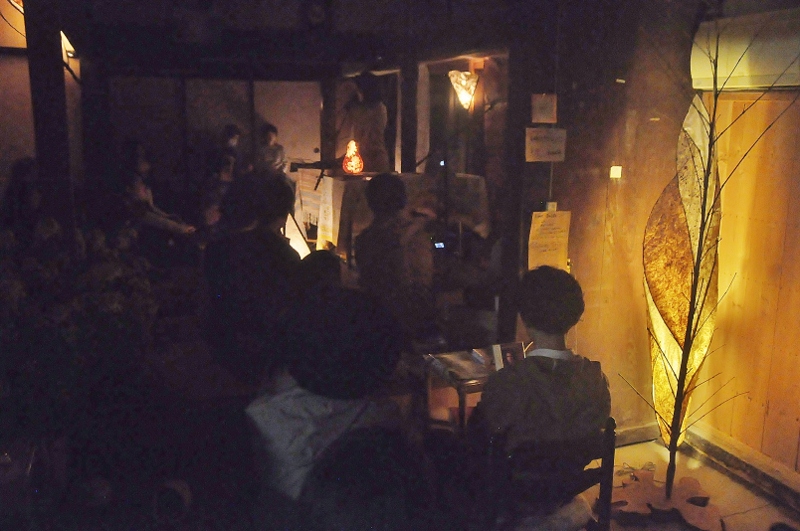 企画した大塚まいチャン、会場の灯り作りにJHに通い、お客さんにオニギリ、スープのサービスと、大奮闘する