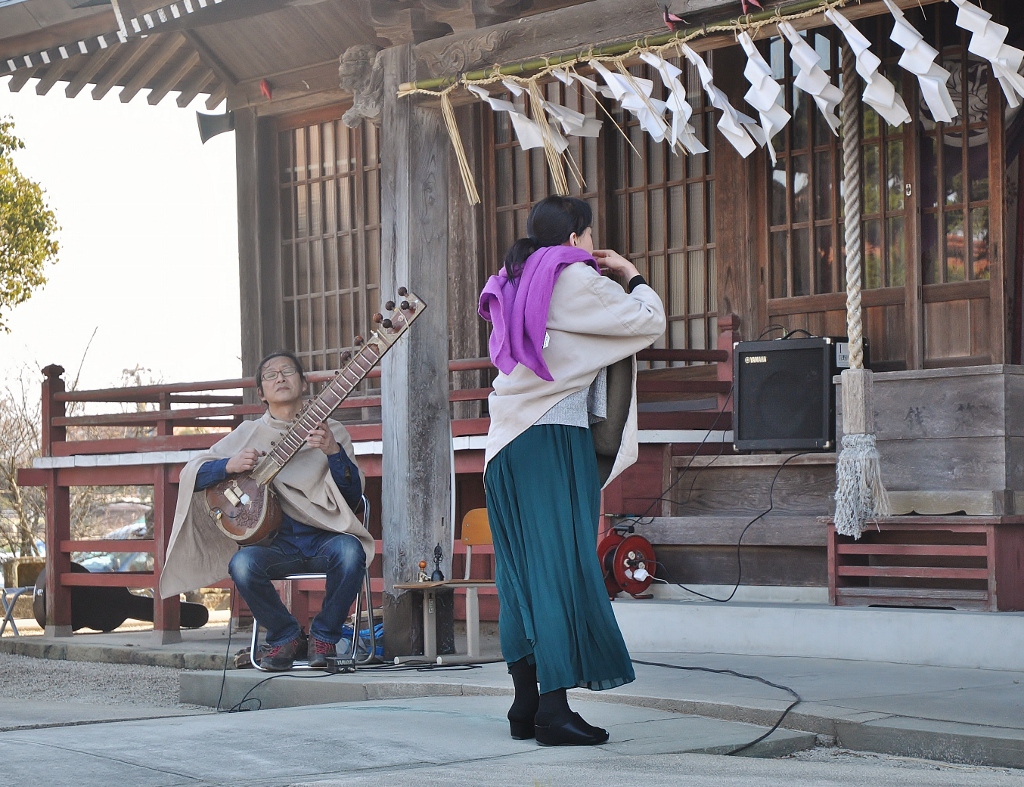 2年前JHにやって来たのが縁で大山の自然に魅せられた整体師の大塚まいチャンが、昨年暮れに南部町のモリサヤ邸に移住して企画した、歌姫三人の春の夜の宴ー、