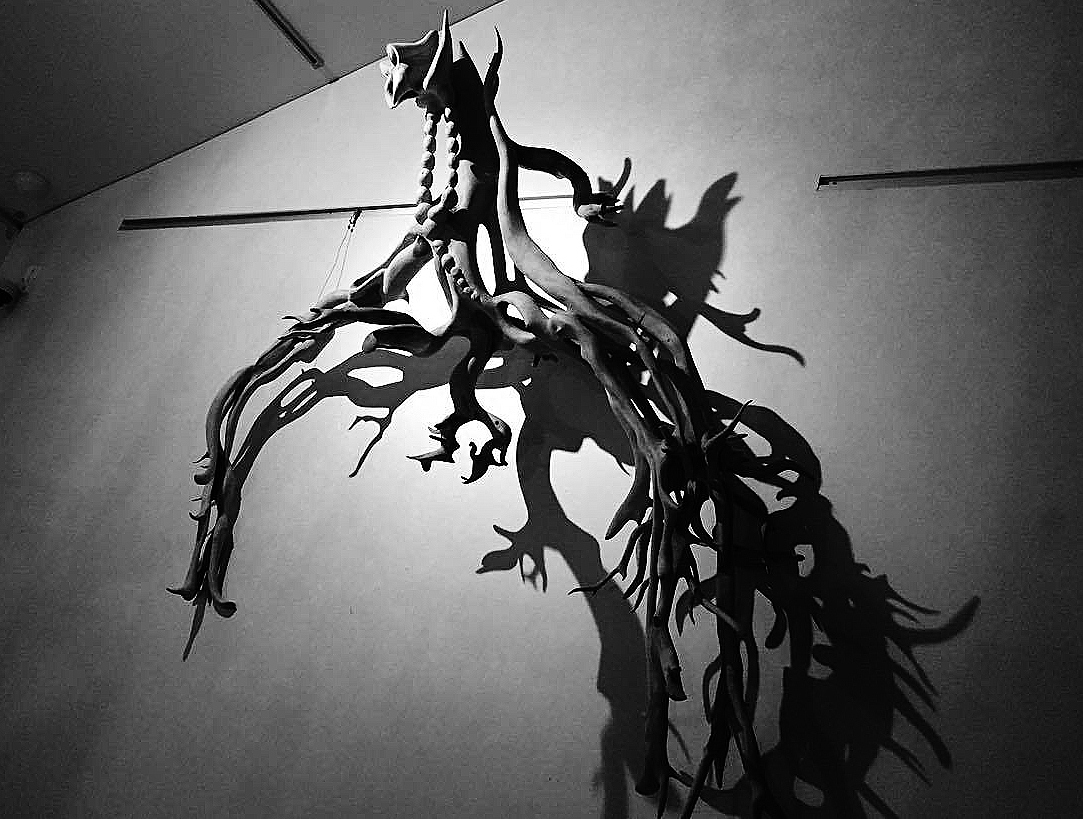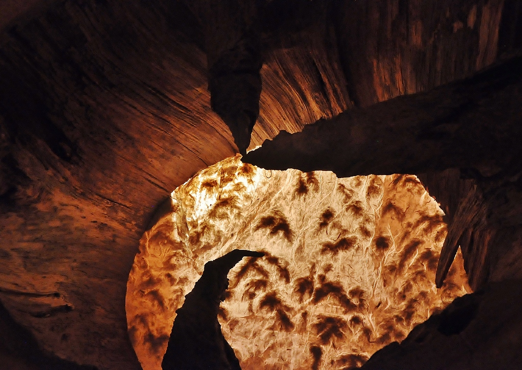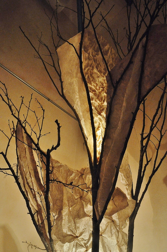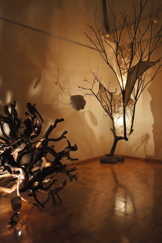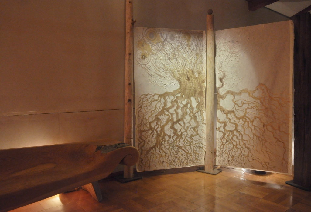 「私自身が木に救われ、鼓舞されてきた。長寿の木が持つ生命力、木の命の不可思議が伝われば」と山ノ内さん。29日には山ノ内さんによる灯(あか)り作りワークショップも行われる。展示は9月3日まで。(藤田和俊)