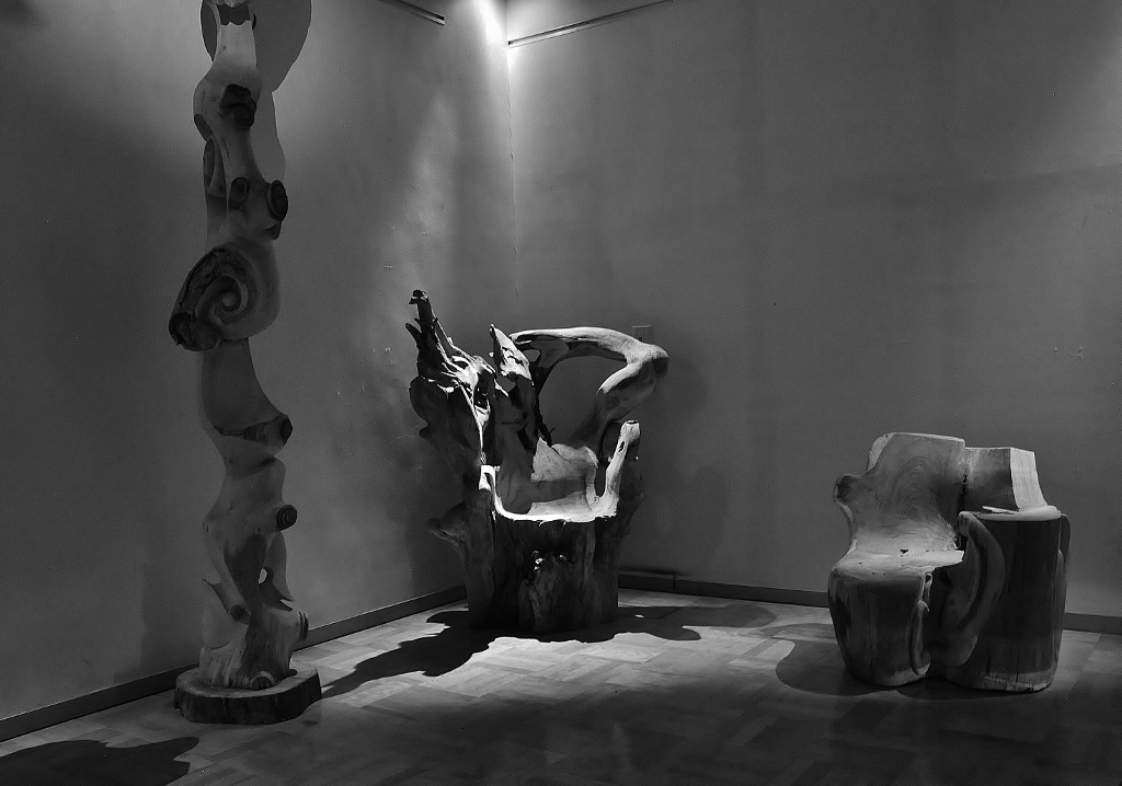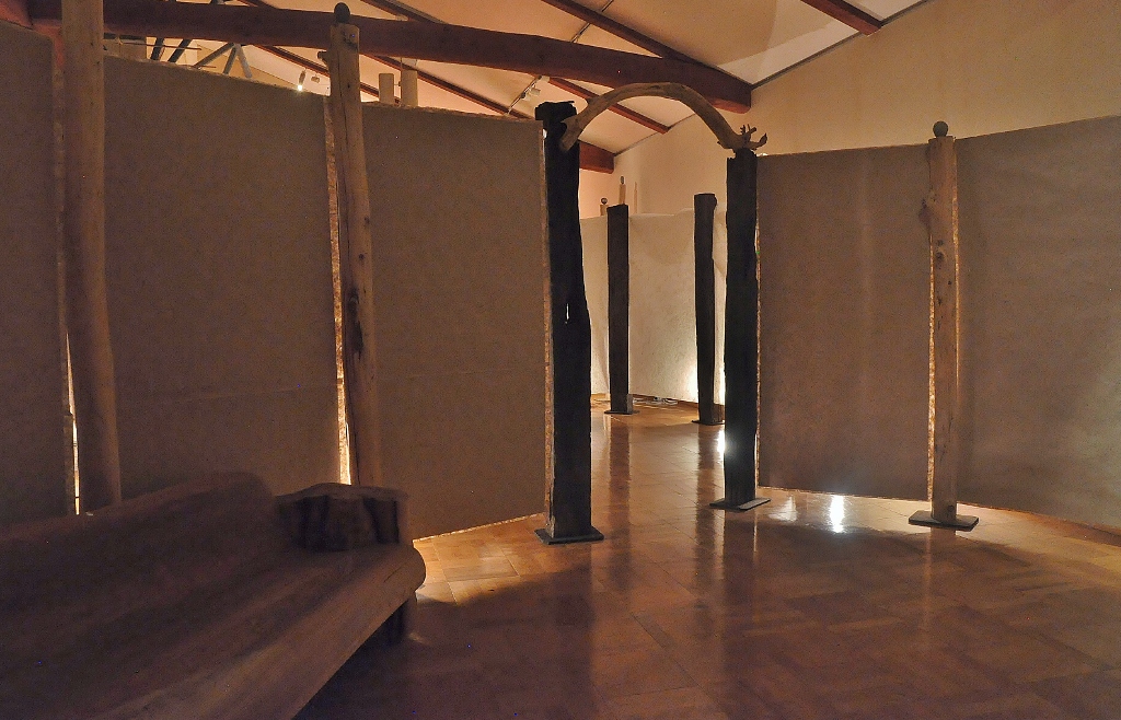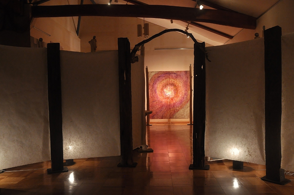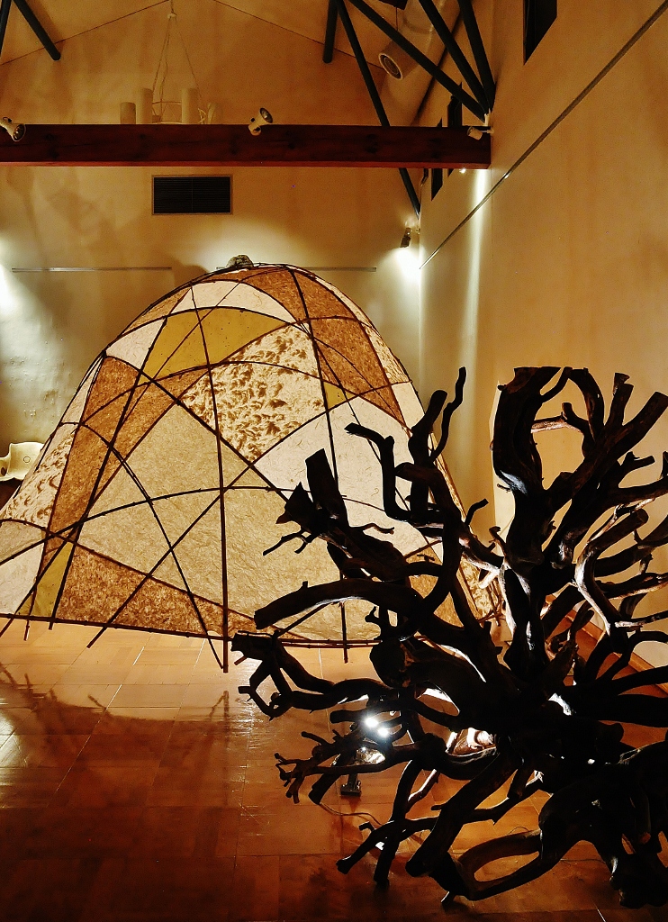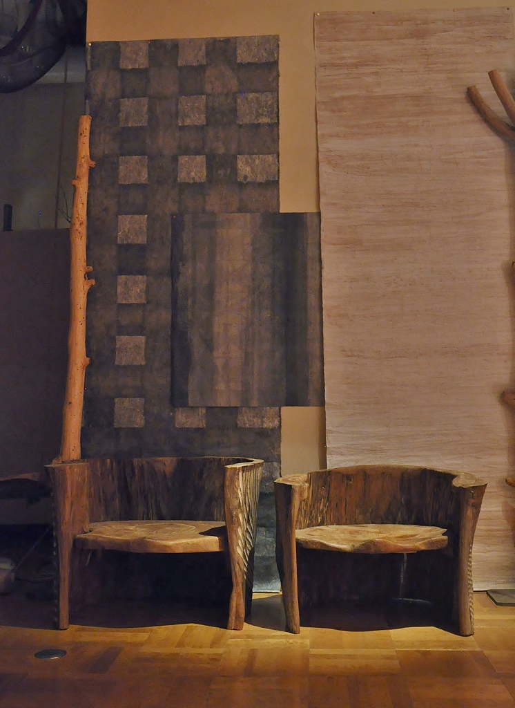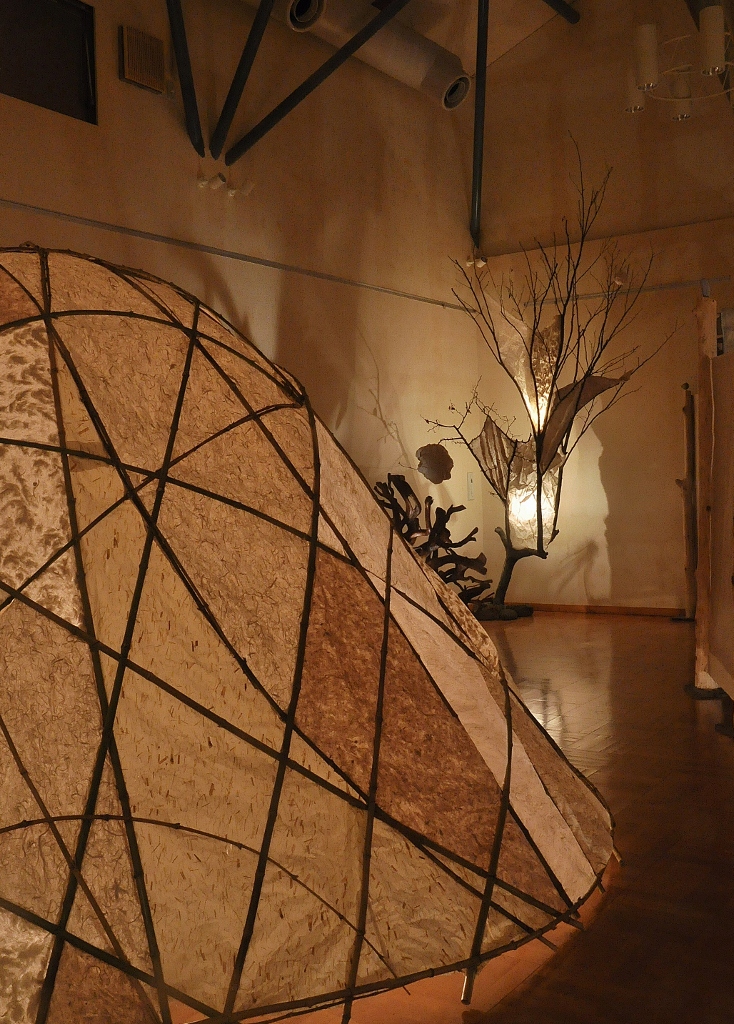 木工作品と和紙融合 山ノ内さんが「木霊展」