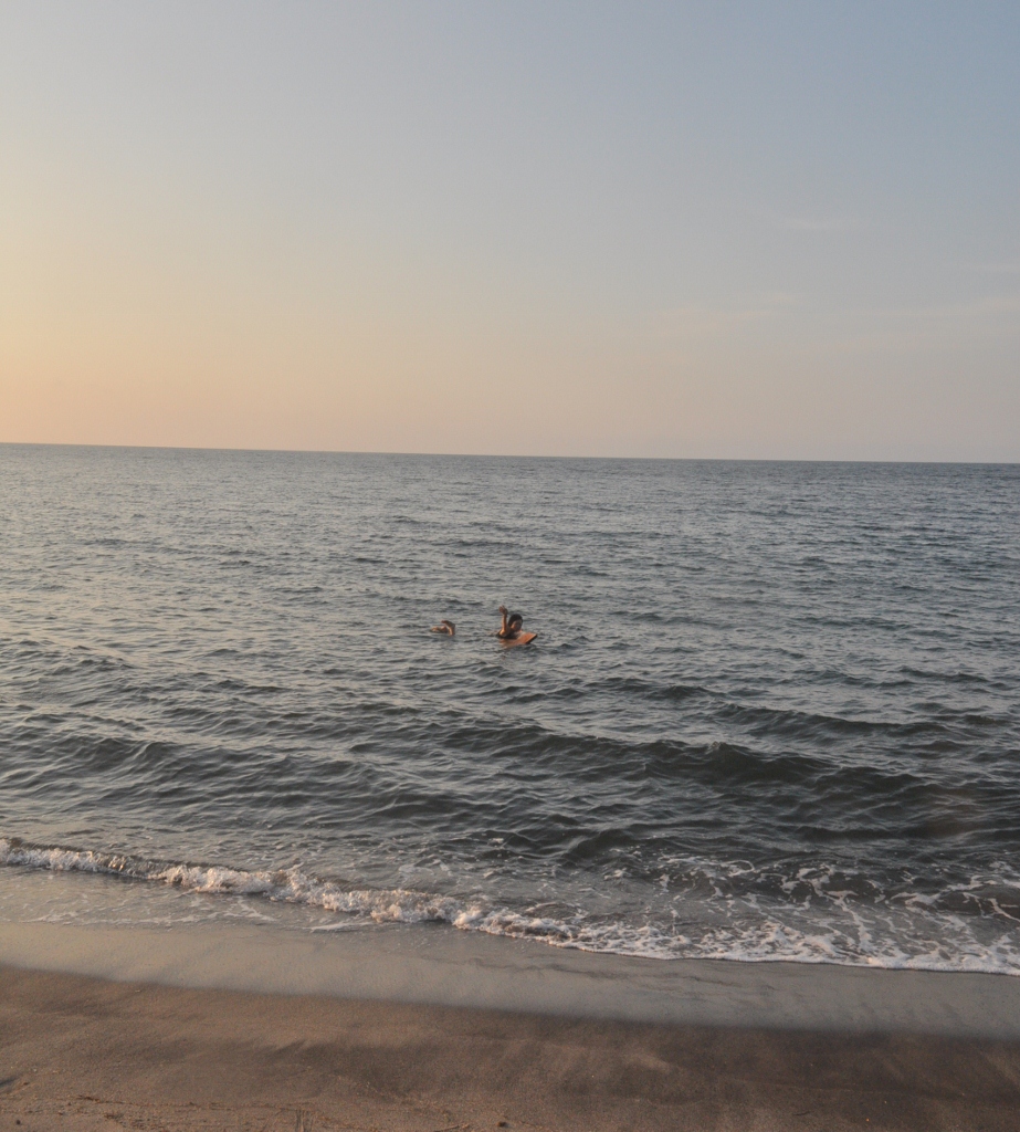 受川奈保さんの声掛けで、木の下で風に吹かれながら自由に絵を描く解放の夏の日.