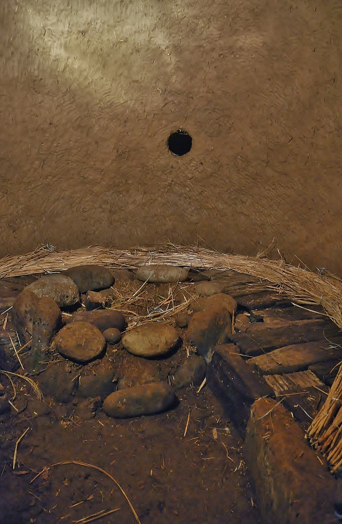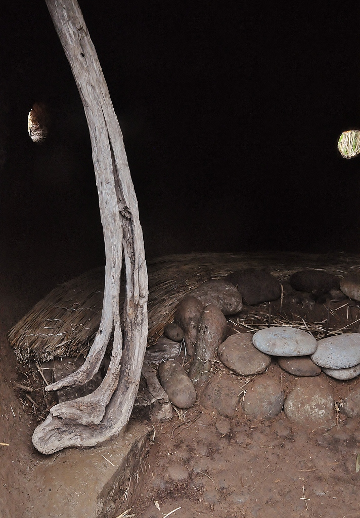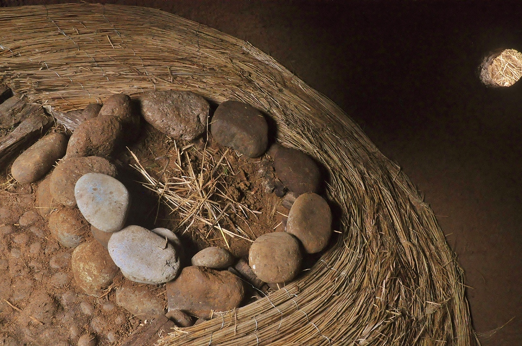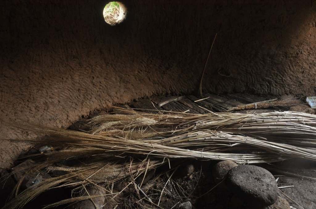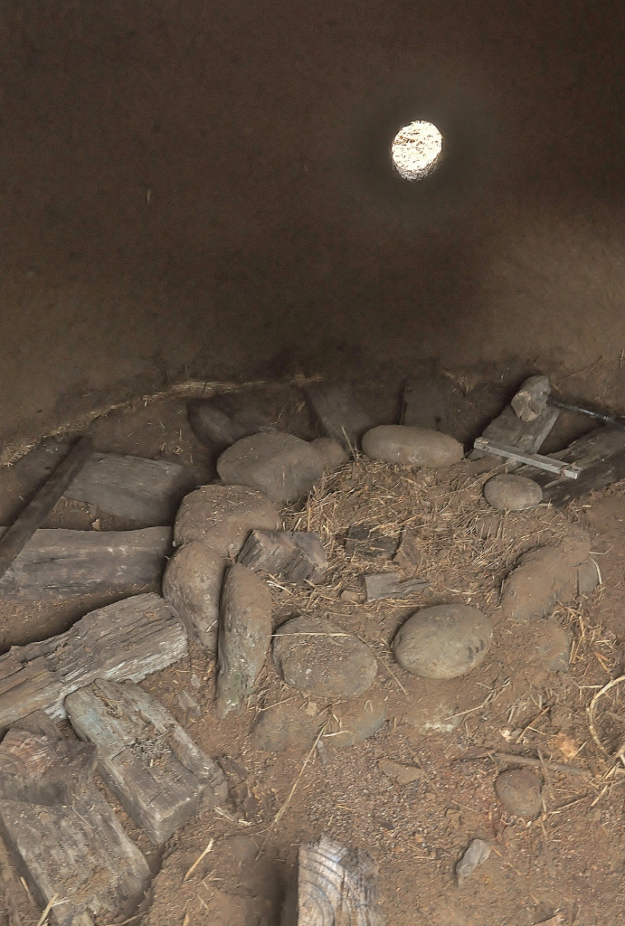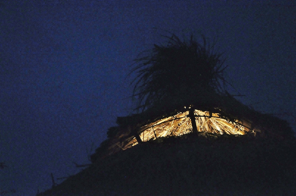 *下地に枕木古材を敷き詰めて、ススキの座を敷いてゆく. 薪置き場に流木の柱を立てて、小さな火を三年ぶりに点す.