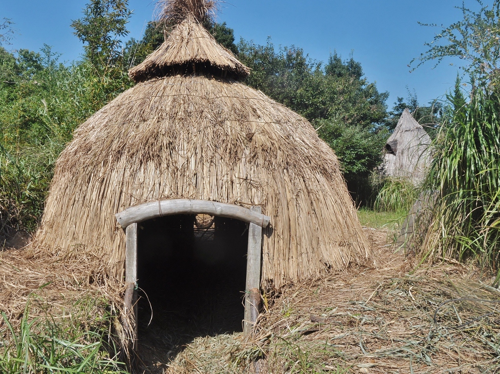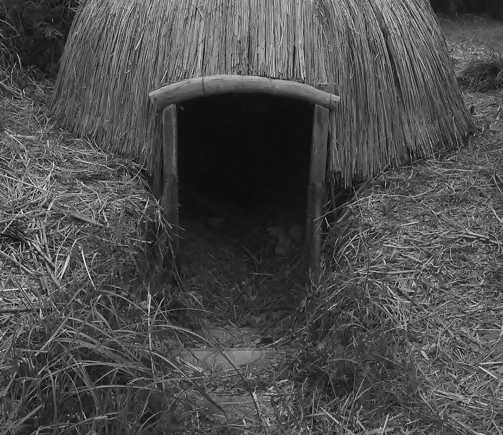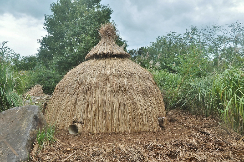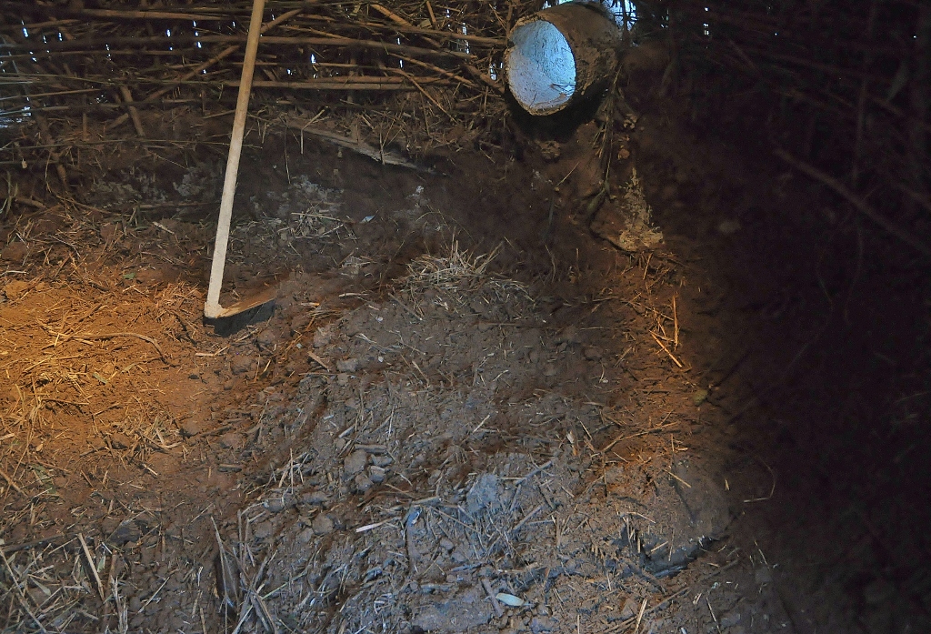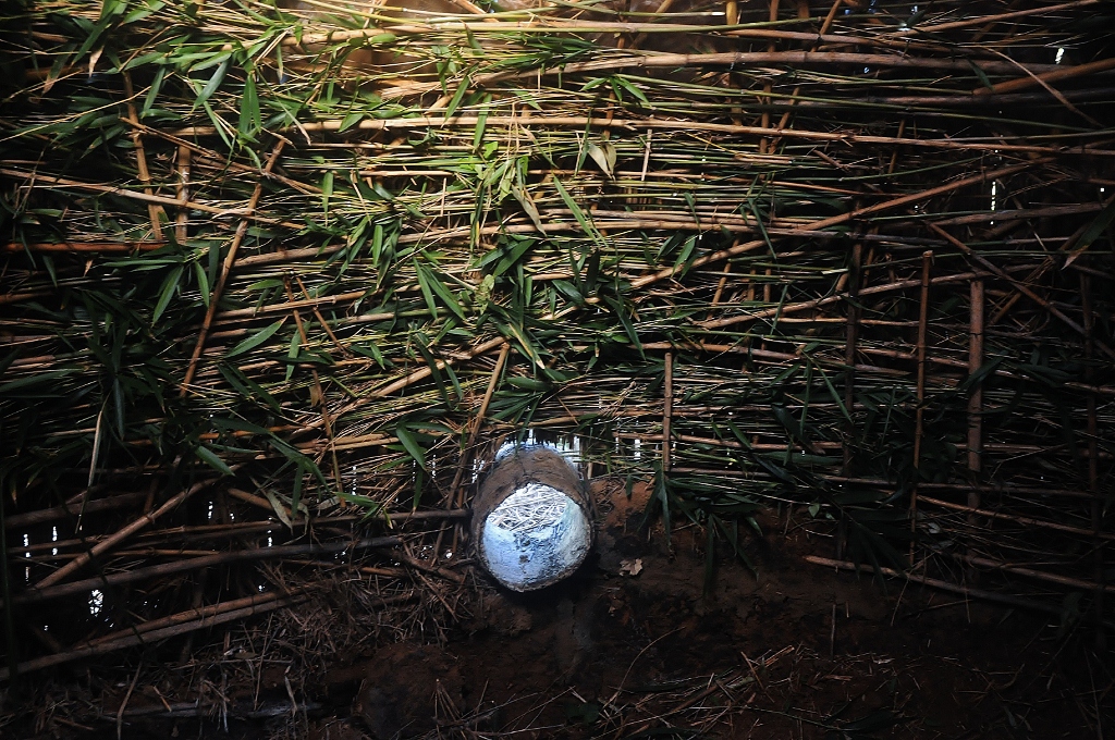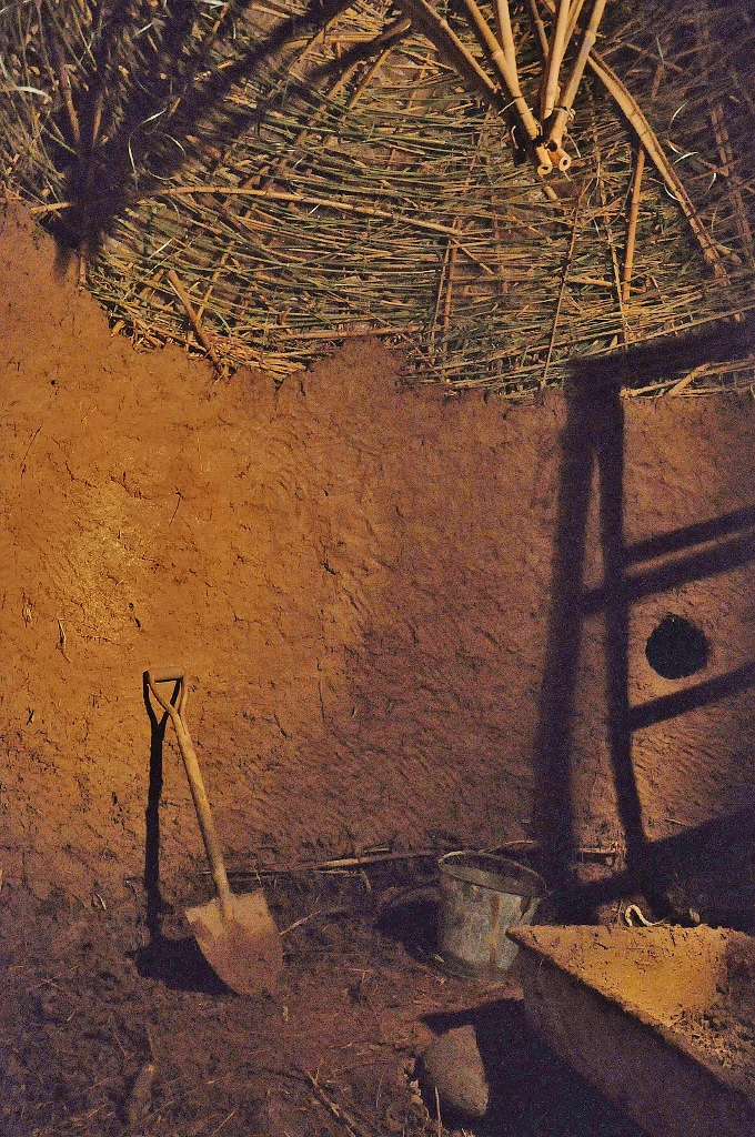 < ドローム rebuild >Ⅲ・・・・ コメントを残す *葺きあげたカヤの穂先をカットして仕上げ、内部土塗りのための下地を笹竹で作る。 そして崩れ落ちた壁土を再度練り直し、塗りつけていく. ー崩れ残った前の壁に憂いを帯びた白い牛が現われるー 関連