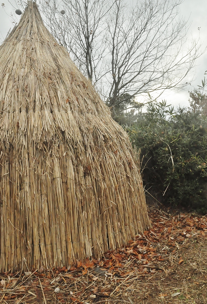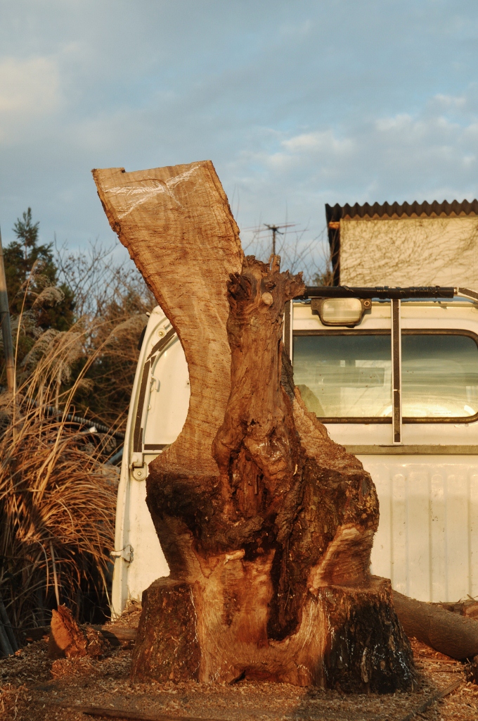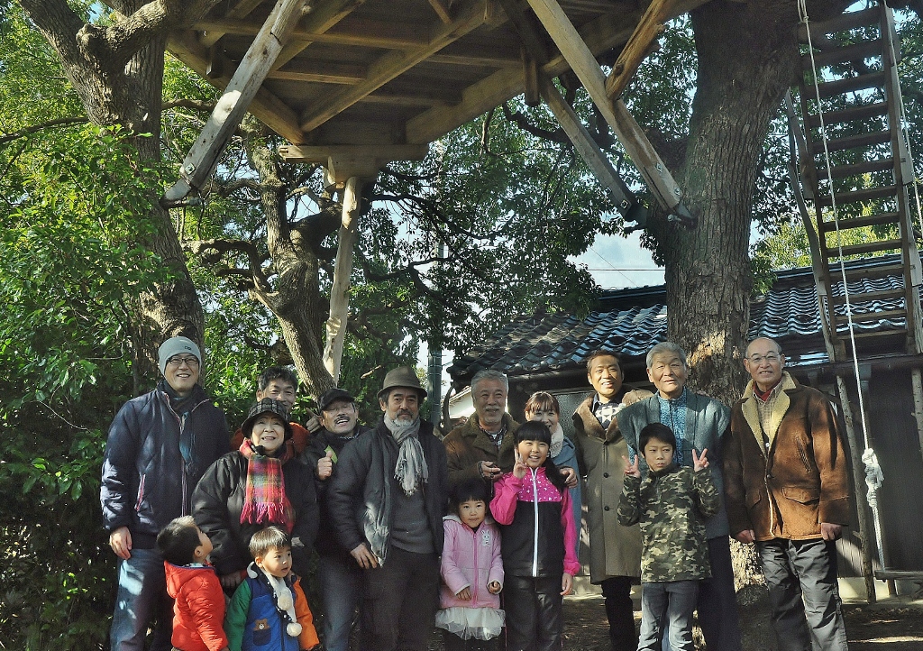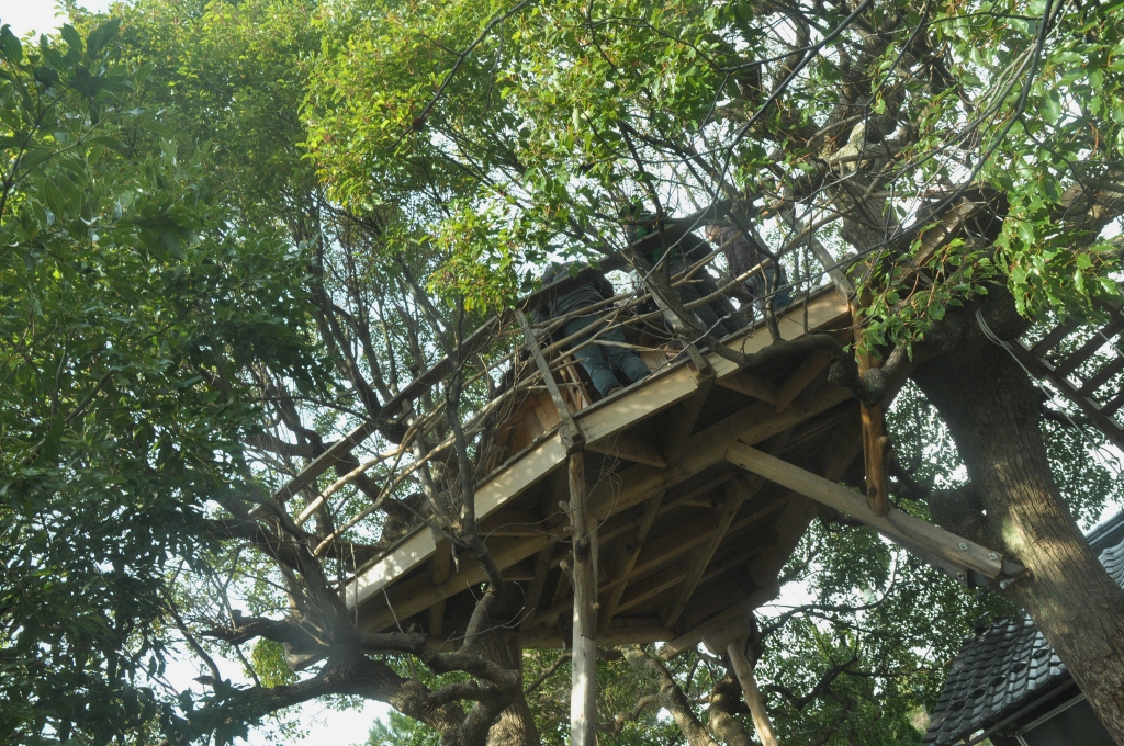 <tree house>TV取材・・・ コメントを残す *小雪の舞い散るツリーハウスで遠方から駆けつけたリポーターを主が茶を点て持て成す、という趣向で、年明け4日朝9時半「ふれあい出会い旅」(日テレ系)という番組の中で紹介されます。 下でのインタビューの時は陽も差してきていい流れ、 皆の帰った後、午後の日差しの入るハウスで師匠に茶をふるまって頂く。 冬の茶会もなかなかの風情。