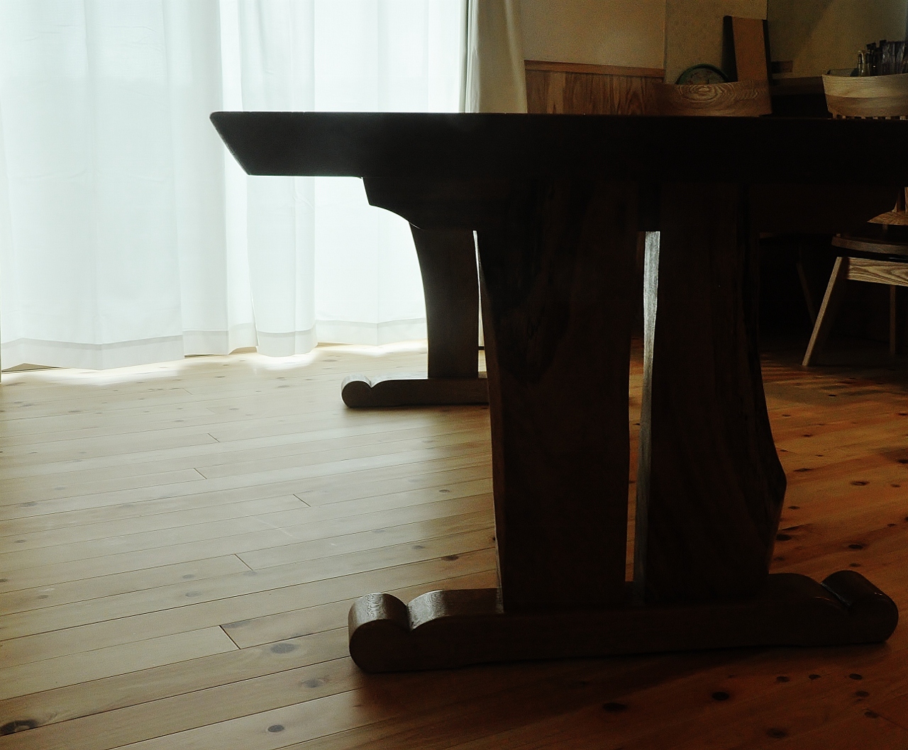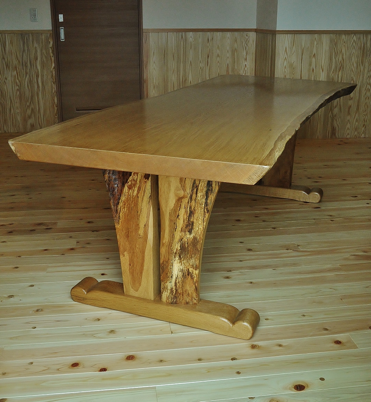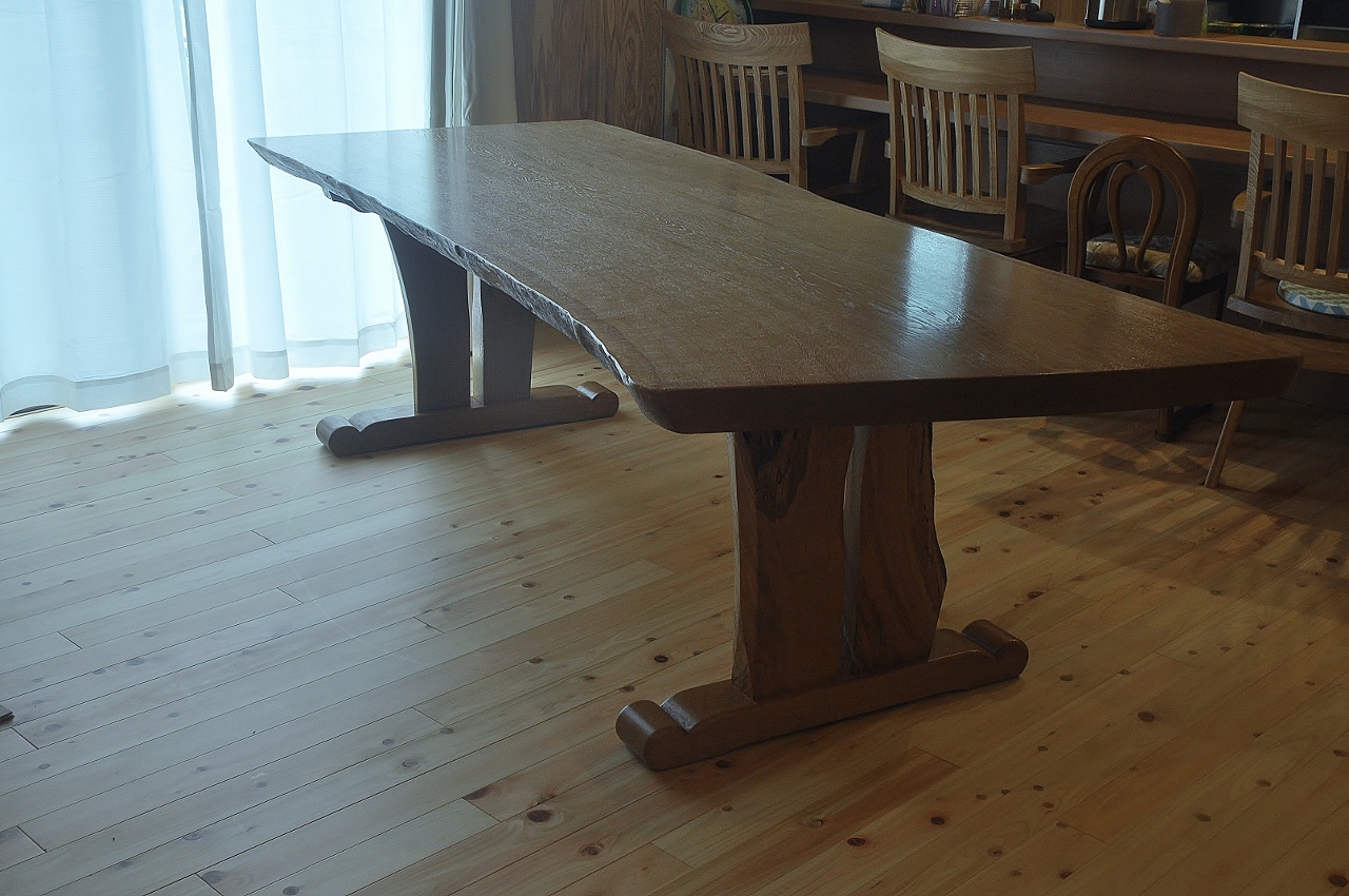 <ナラのダイニングテーブル>finish~納品 コメントを残す *天板の表裏共に捨て難く、両面使い出来るように、置き脚に加工する。 そして程近い注文主の新居に納める、 その開放的なリビングダイニングスペースに程良い大きさで、人が集まるこの家の中心になりそう。