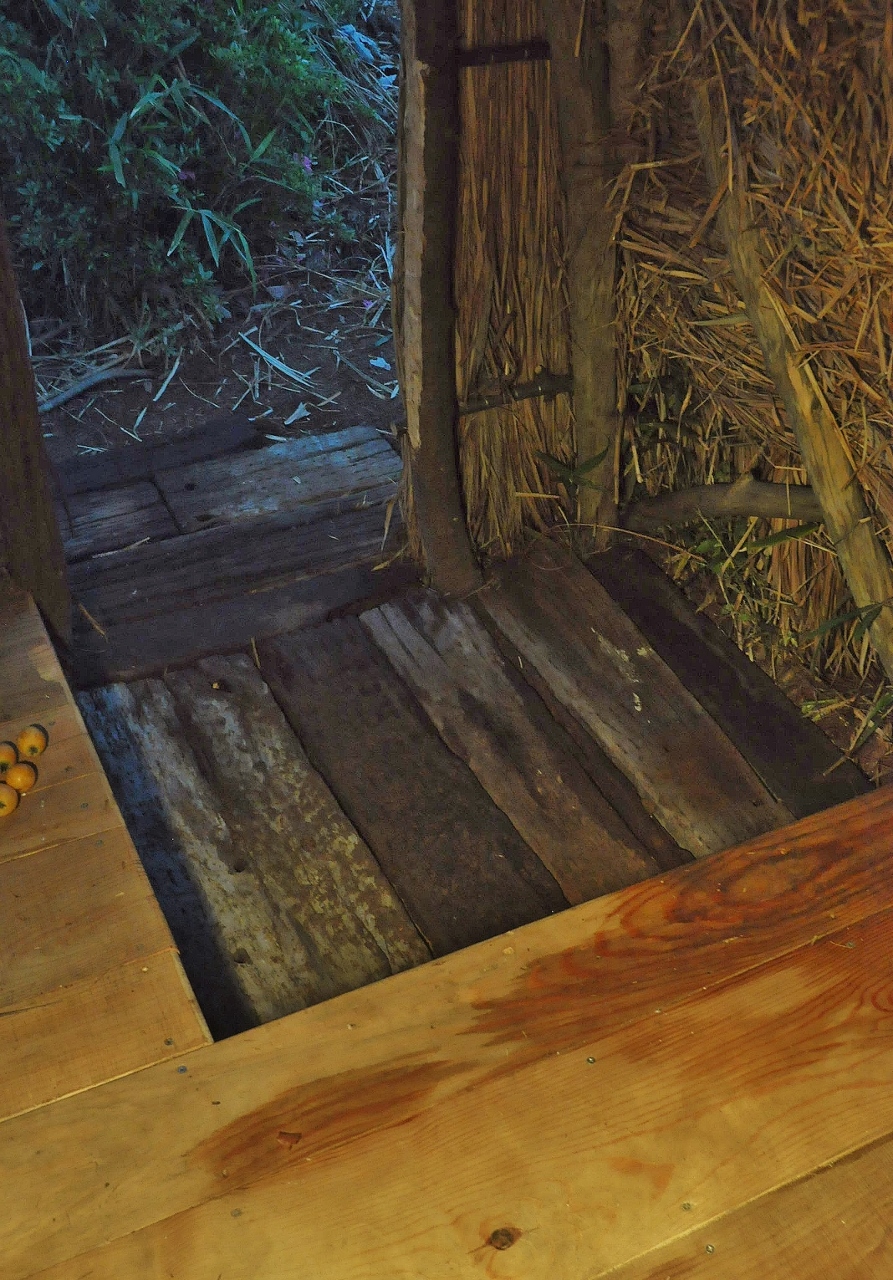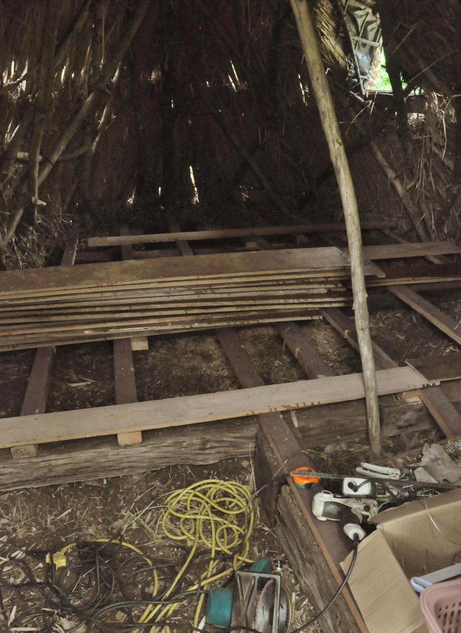 塗装のはがされた木タイルの目地をコーキングで埋めてゆく。なれなくて作業が進まない。