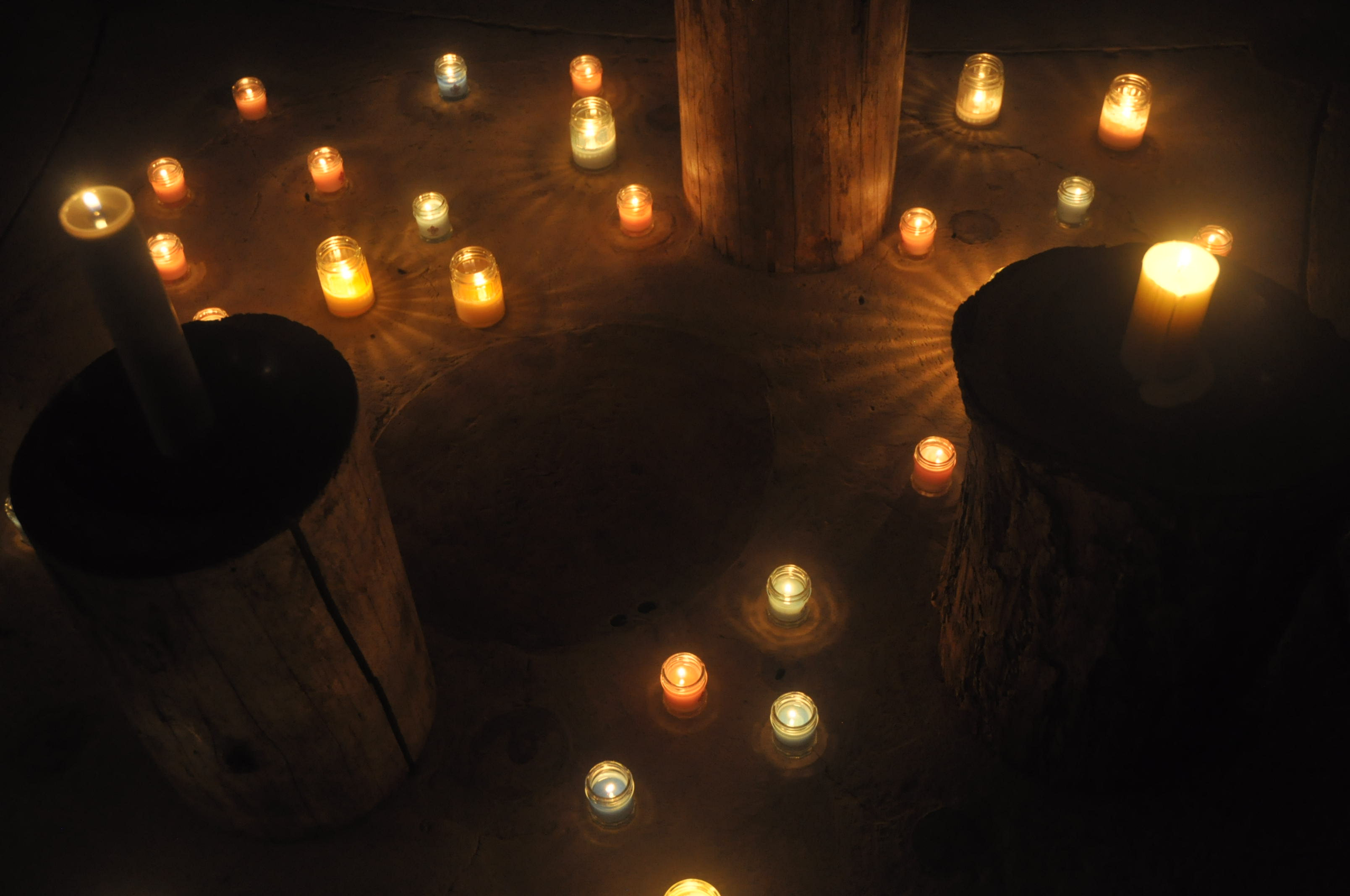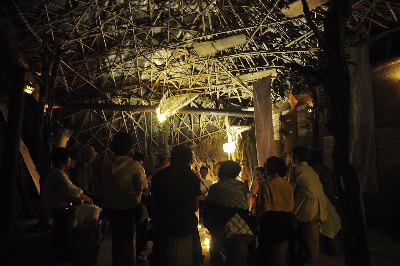 *夏至の夕刻、キャンドルに照らされたドームに集まった20名を前に、