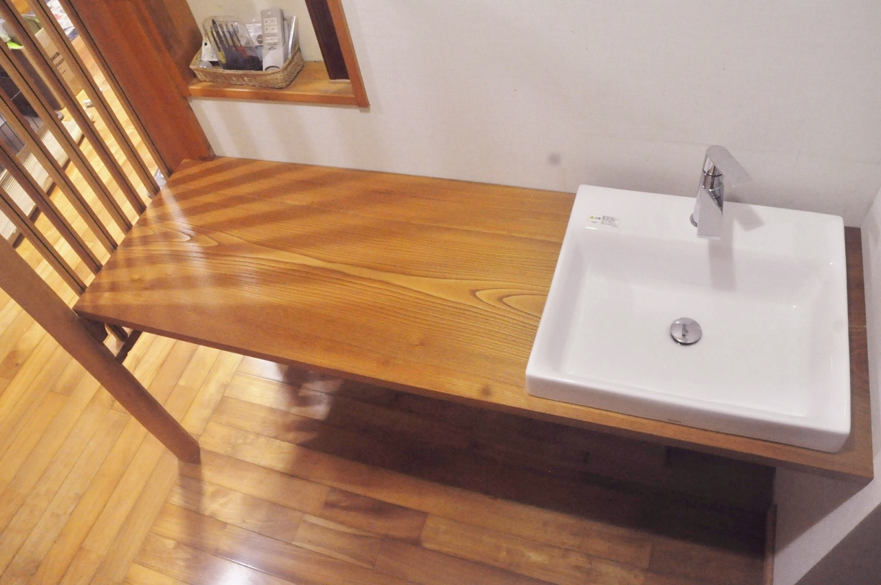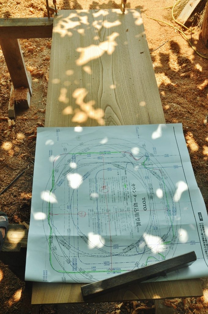 *L400×W80×D4というローングテーブル材を粗削りする。 堅く逆目が出やすい手ごわい木である。