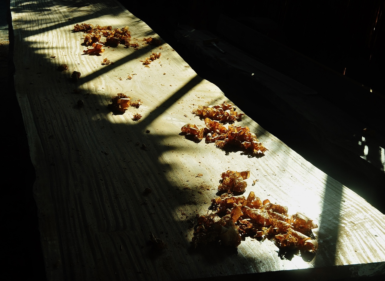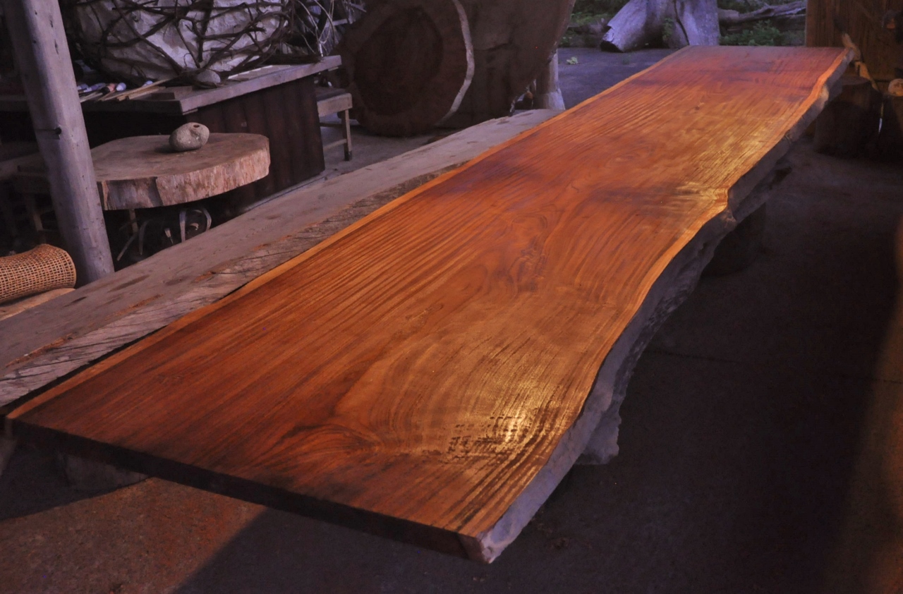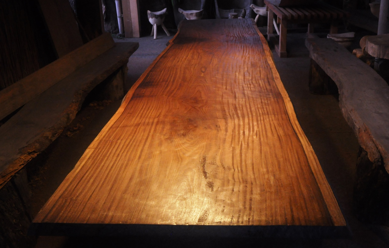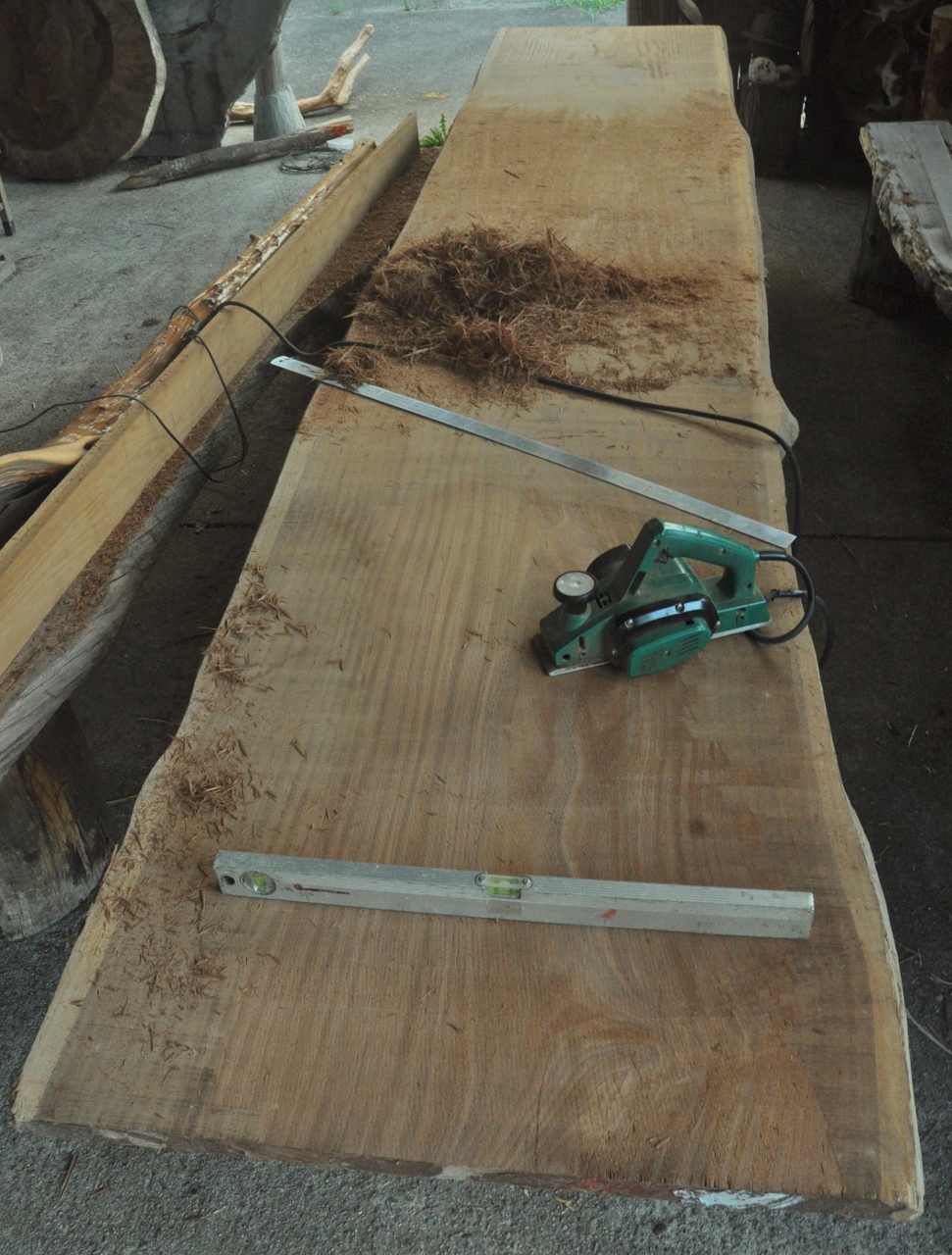 *L400×W80×D4というローングテーブル材を粗削りする。 堅く逆目が出やすい手ごわい木である。