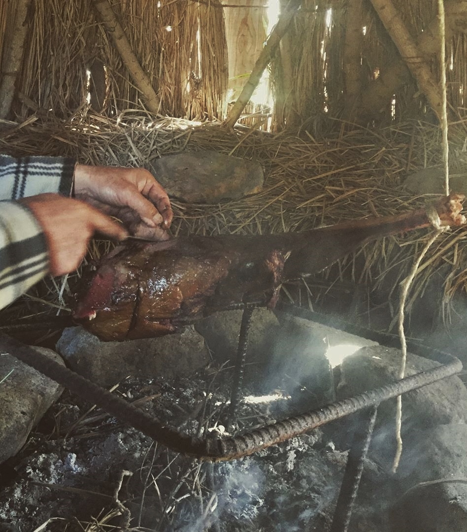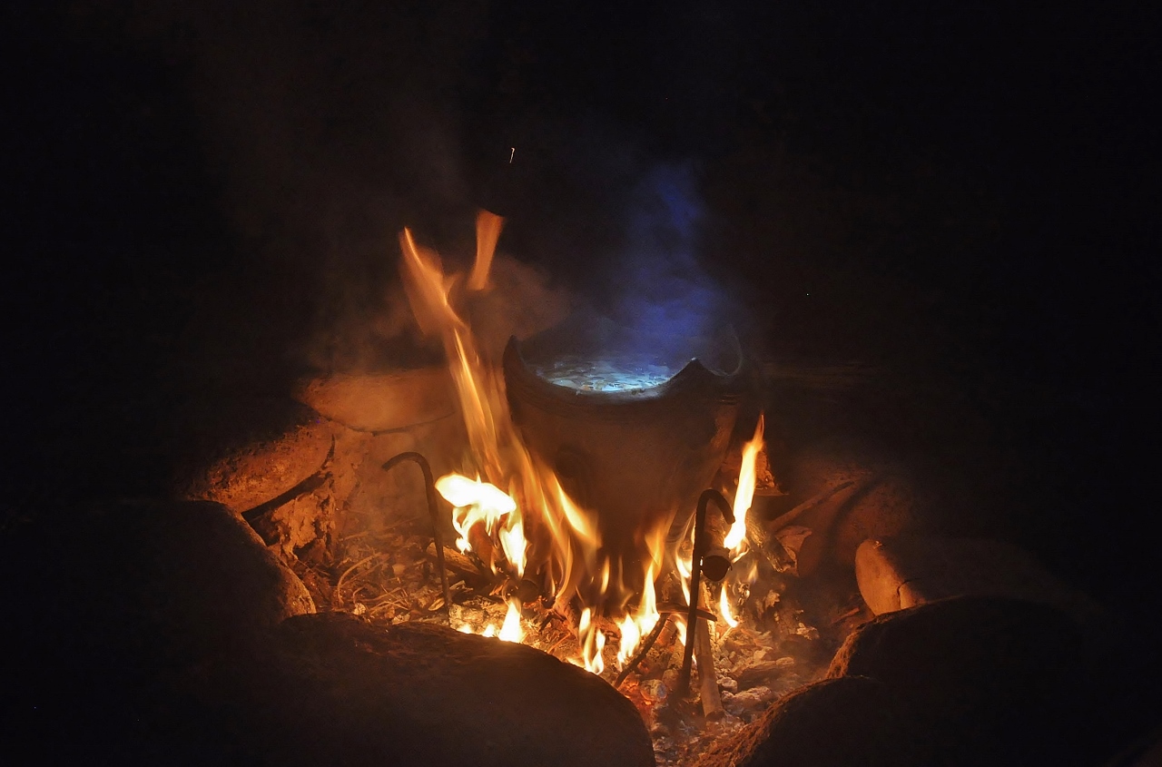 そして南部町獲れの猪と野菜のシンプルな煮炊きを野外で。