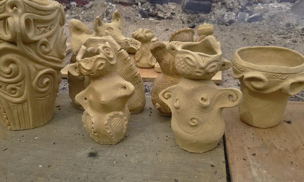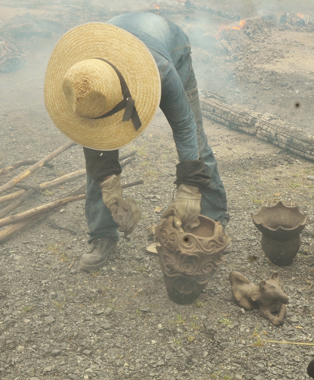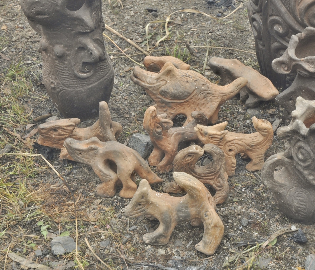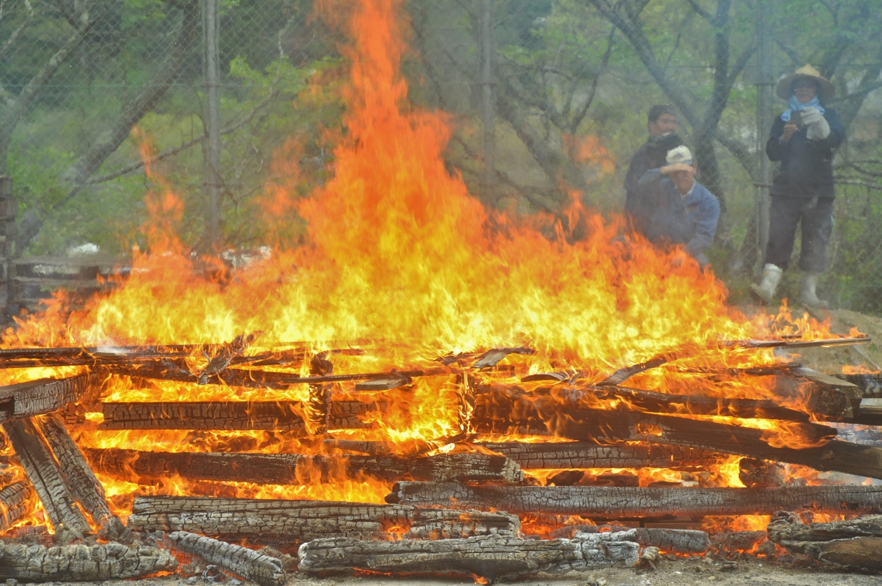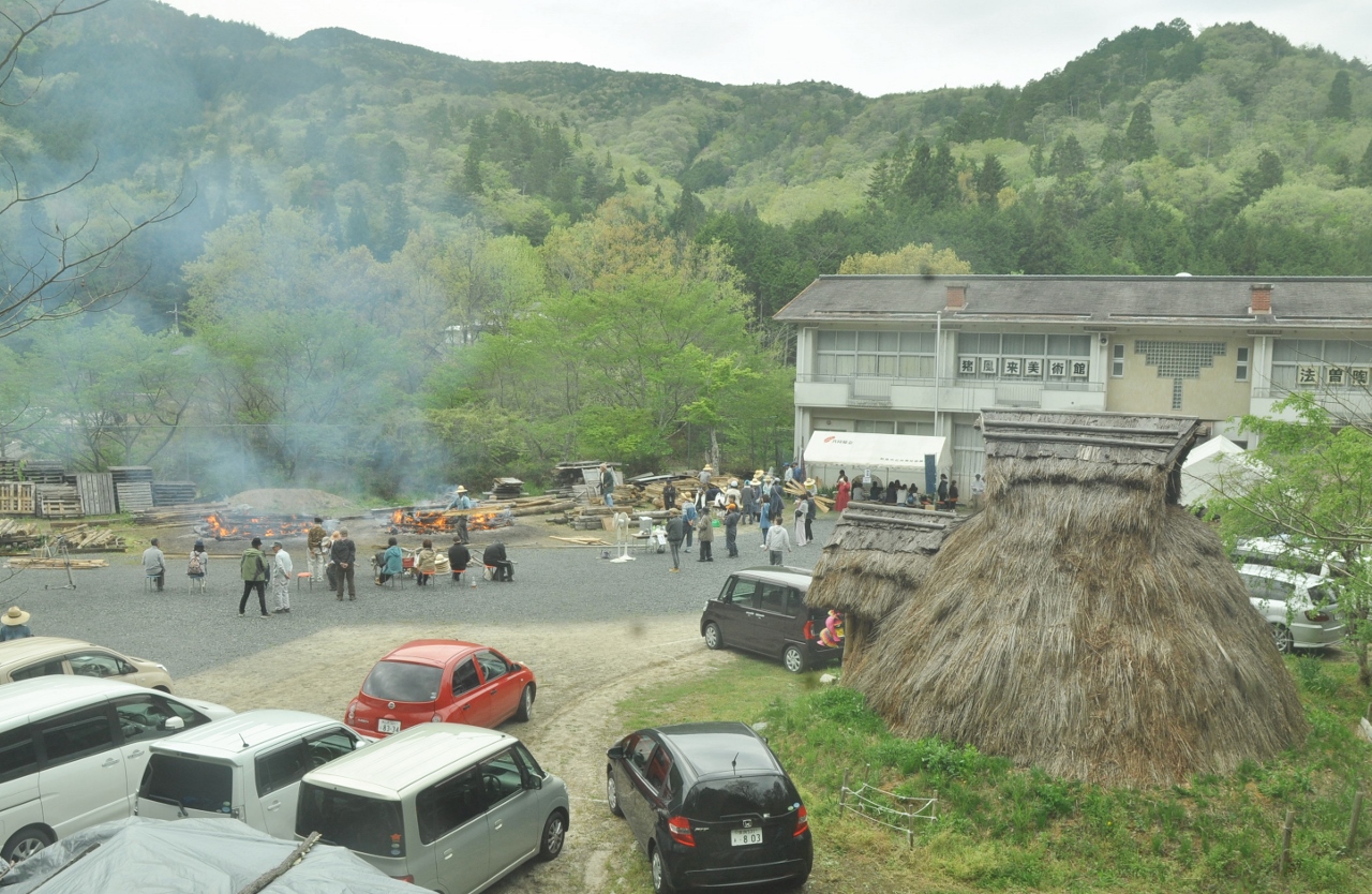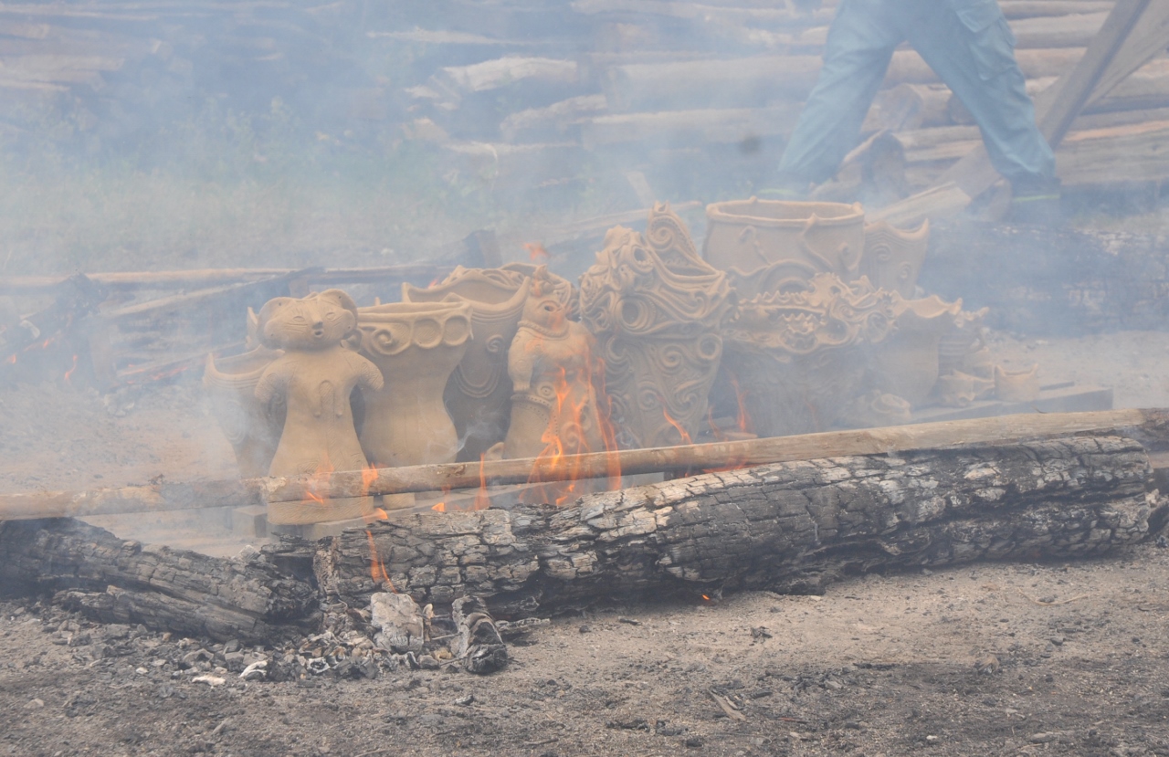 4/28 『縄文野焼き祭り』 猪風来美術館(岡山県新見市) コメントを残す *毎年春と秋に開催される猪風来美術館での縄文土器の野焼き。 縄文の炎を燃やし続けてきた猪風来氏を祭司として、男と女に分かれて今回のために作った土器の作者たちの手で古材の薪が周囲にくべられてゆき、大いなる炎に土器たちが包まれていく。 皆の注視の中、焼かれていく土器たちは赤子のように炎の子宮から生まれ出て来た。