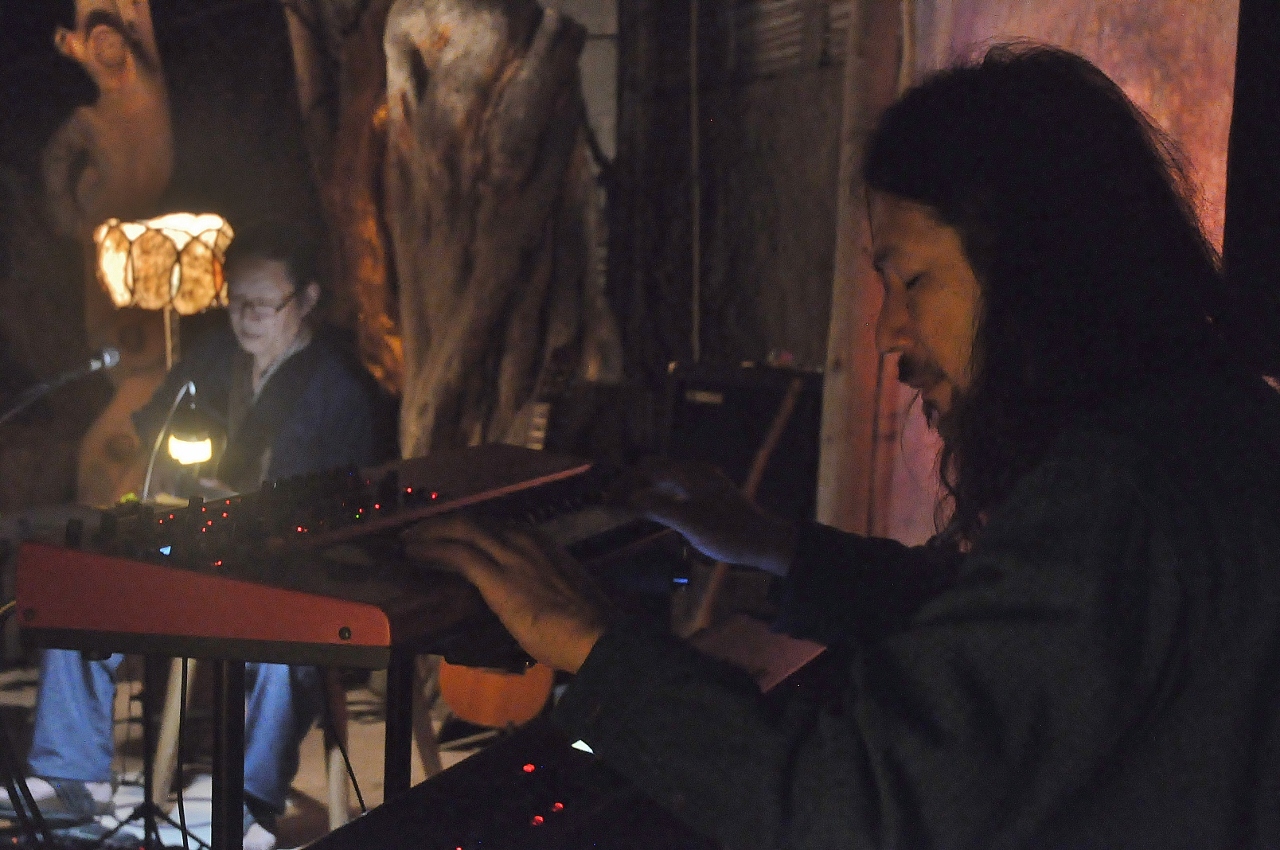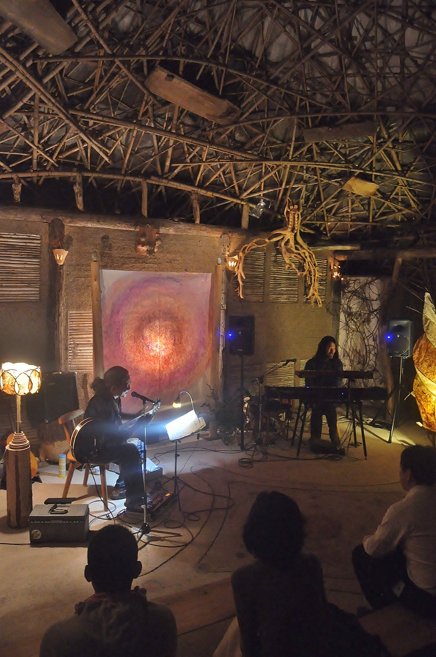 先日の斎庭でのライブに続き、ジュピタリアン・ヒルの空間でのセカンドセッション。それぞれにマルチプレーヤーとしての立ち位置も持ちながら、それぞれのメイン楽器であるギター、ピアノによって交差する音世界。