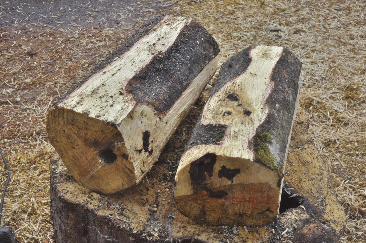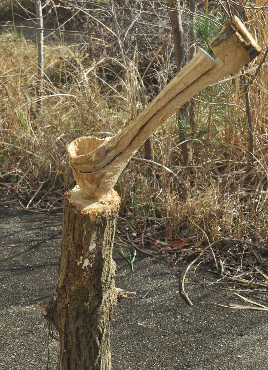 *栗の枝分かれを使って、大小二柄のお玉をつくる。 (35cm&48cm)