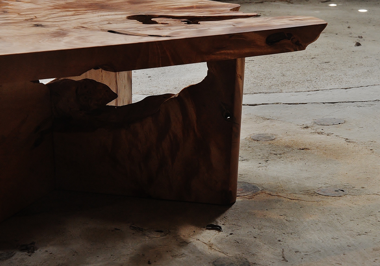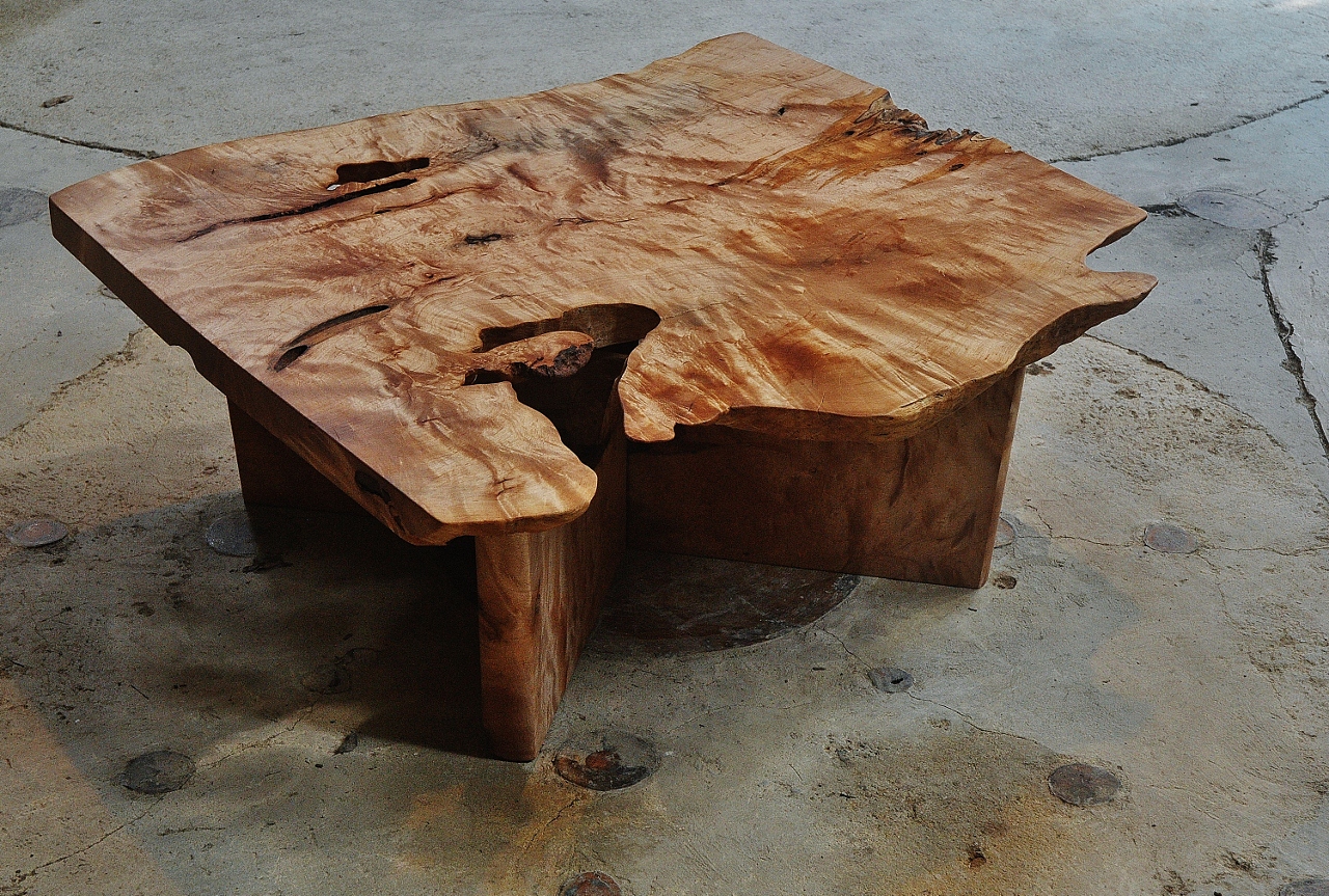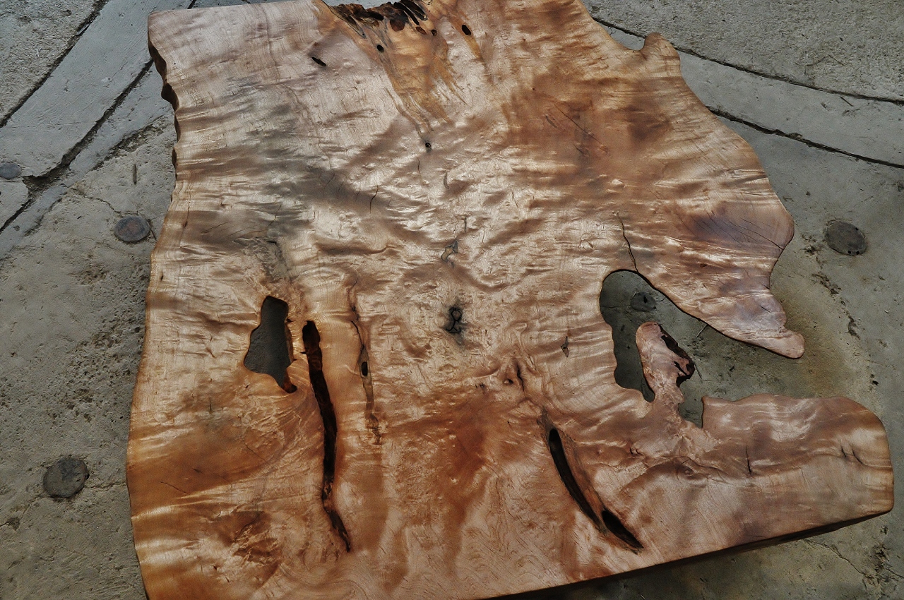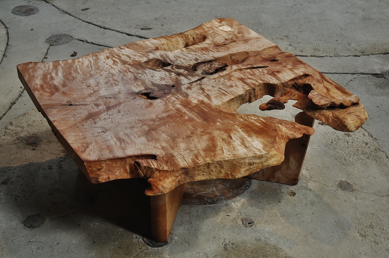 <カエデローテーブル>order・・・・ コメントを残す *幅80以上ある大きなカエデをコタツ板にも使えるように木取り、両面仕上げる。 その入り皮の表情は面白く、エゴマオイルで塗装すると、木の深みに入ってゆく。