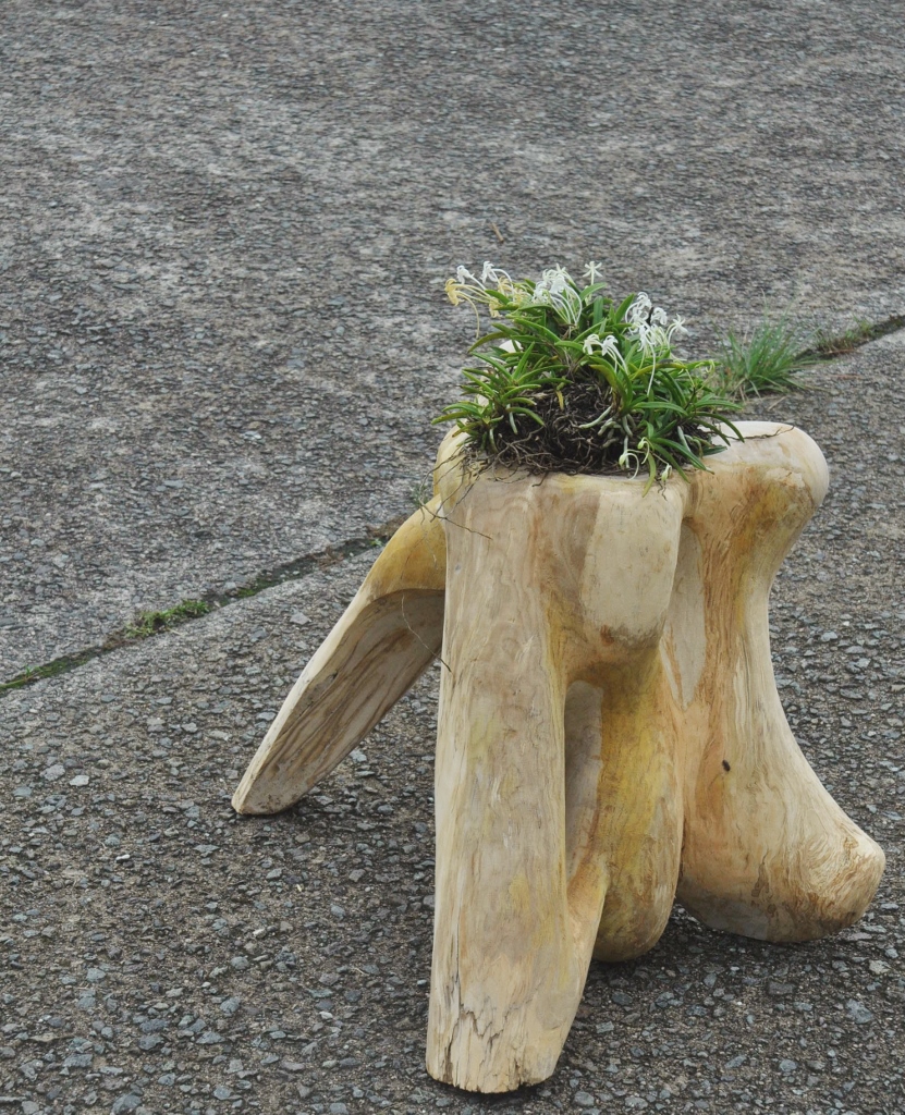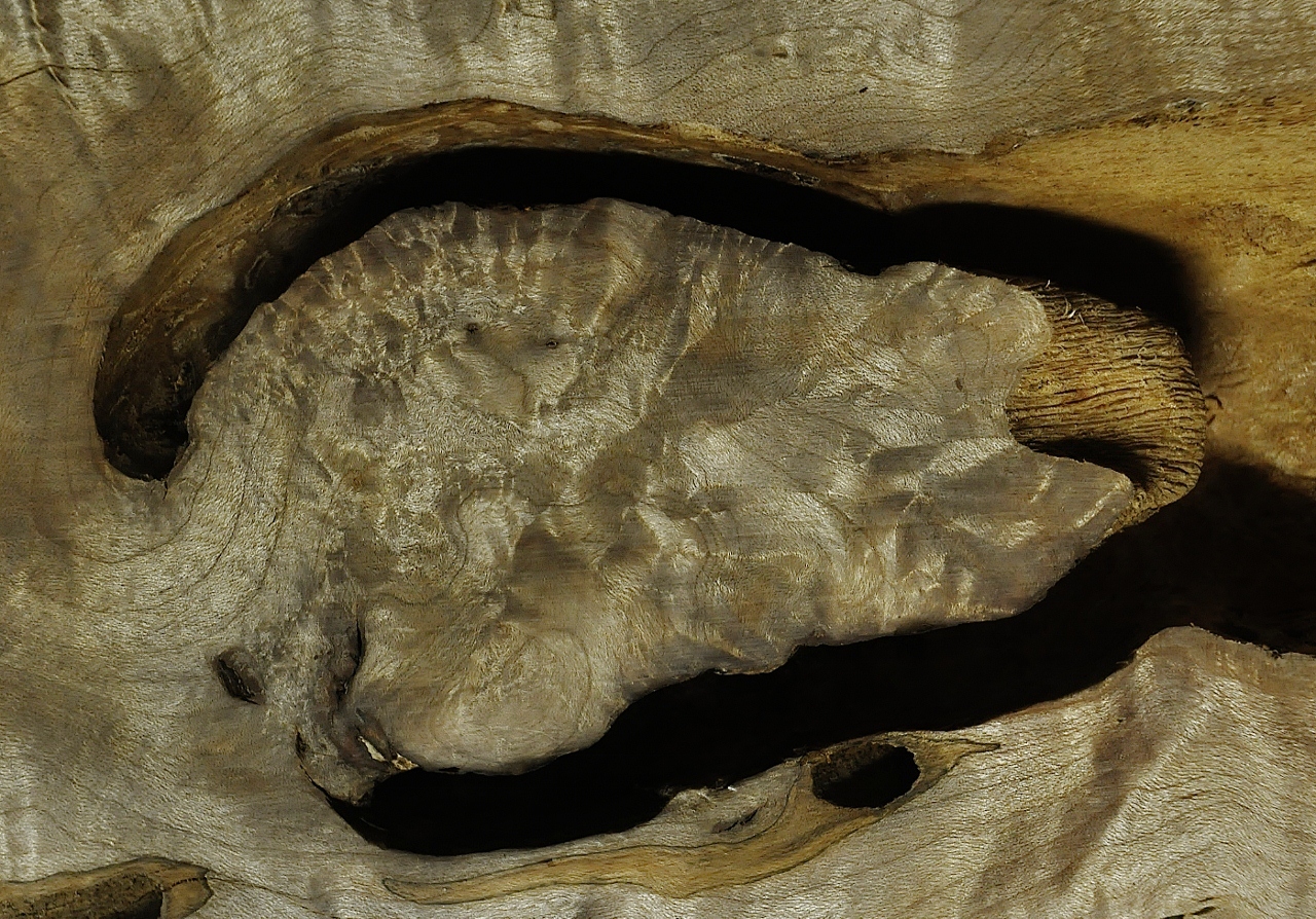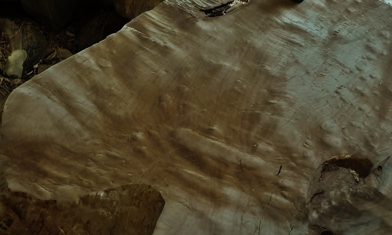 <クリのベンチ>order W170 コメントを残す *二股の根株を半割にして両サイドに使った三人掛けのベンチ、 外側のチジミが綺麗に浮かび出る. (前後に揺れるロッキングにしたらさぞ気持ちいいだろう)