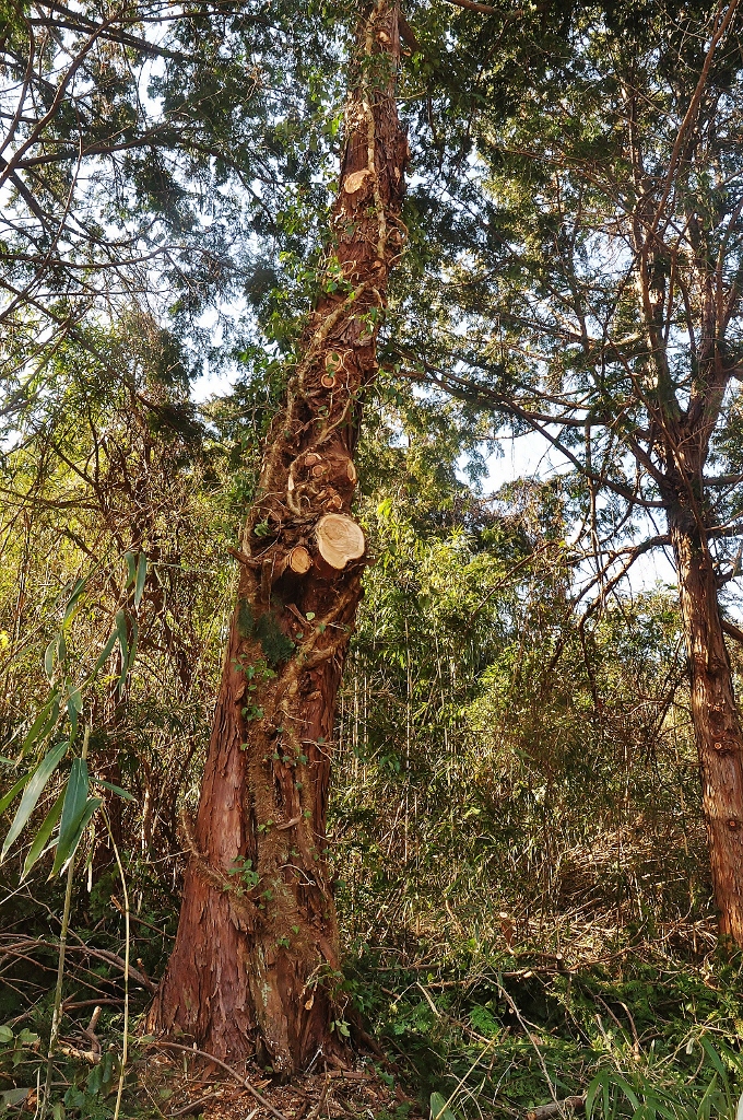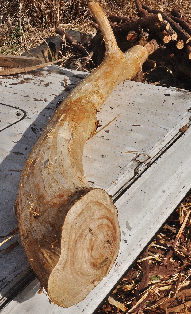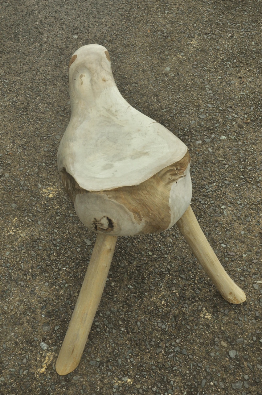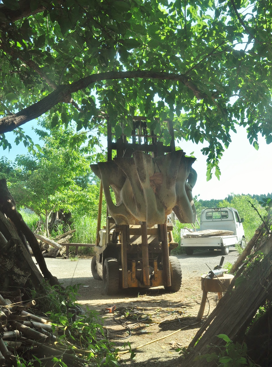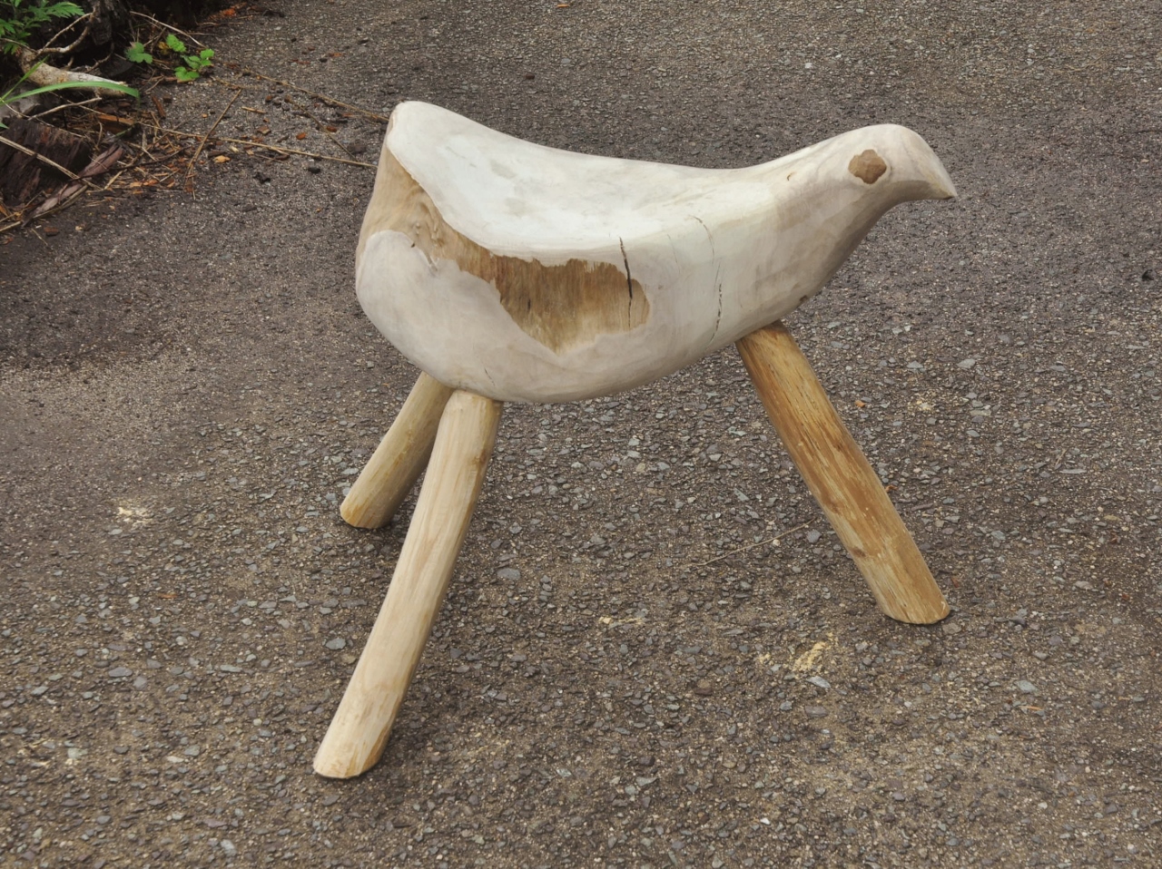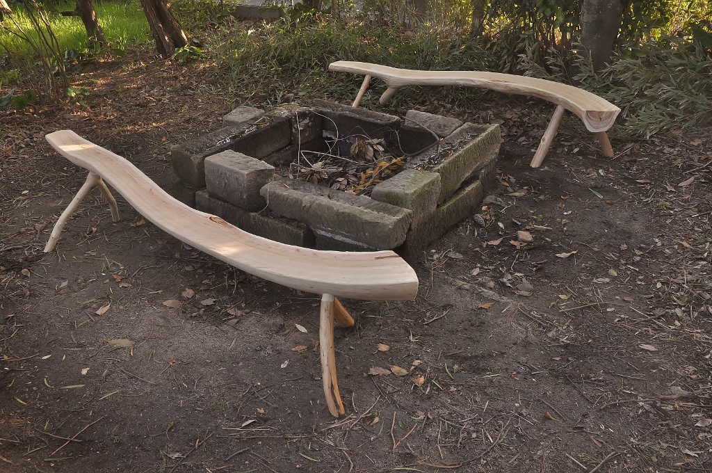 <ヒノキ太枝の腰掛け>NUOW・・・ コメントを残す *JH駐車場向かいのずっと放置されて、なかば野生化したヒノキが高圧線にかかるというので今朝、電力会社の伐採チームによって枝が落とされた。 その中の一番太い枝を割ってベンチに仕立てると、〈ヌオー〉という声が聞こえた。 L180、四人掛けられ軽くて持ち運びが容易なので、これからあちこちに登場しそうである。